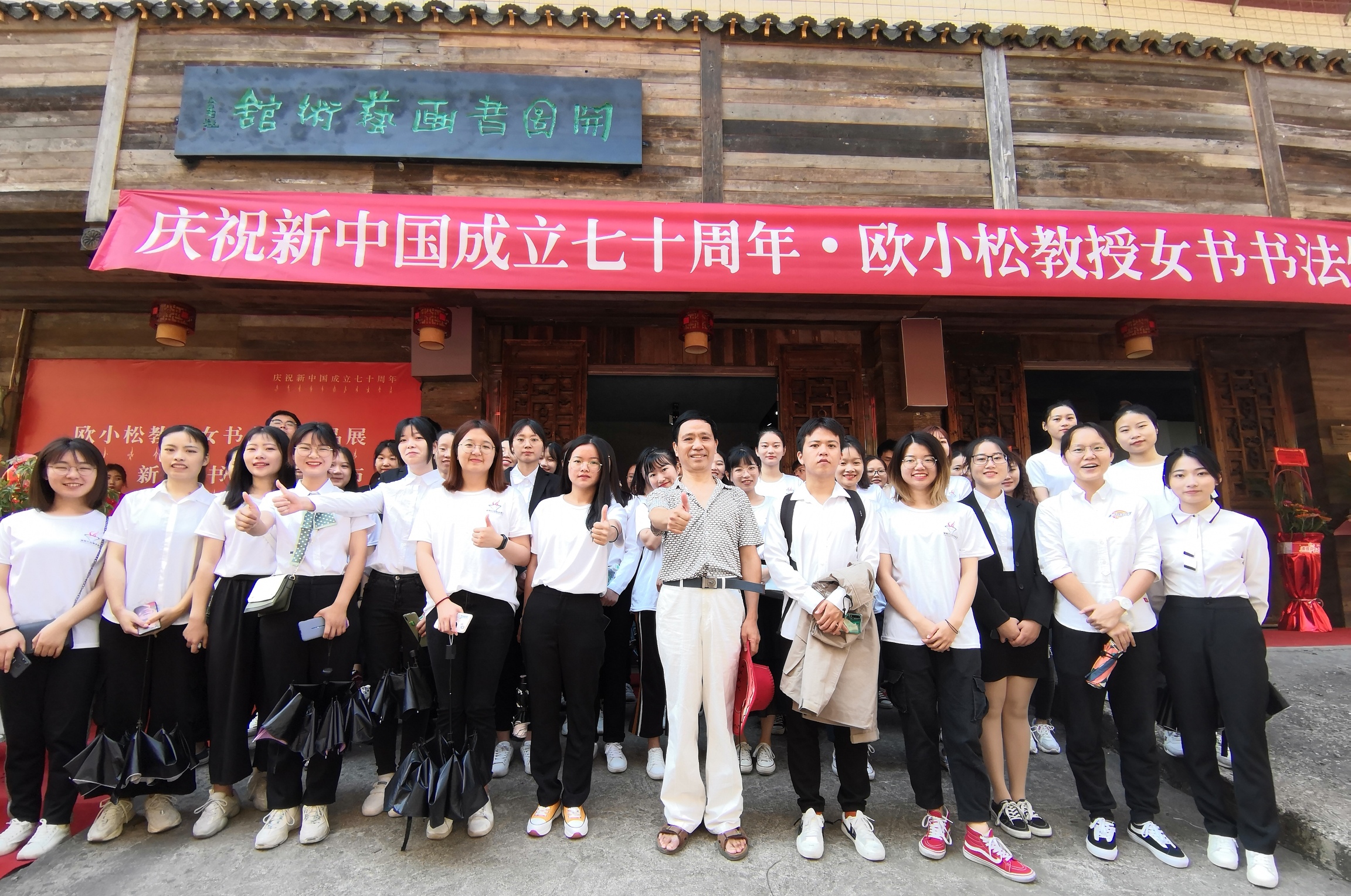 本网讯(通讯员 张米娜)9月28日,为让学生体验女书文化的魅力,上好《永州旅游文化》这门课,beat365中文官方网站旅游与文化产业学院特聘教授彭顺生,带领学生参观了欧小松教授“女书作品展暨新书发布会”。