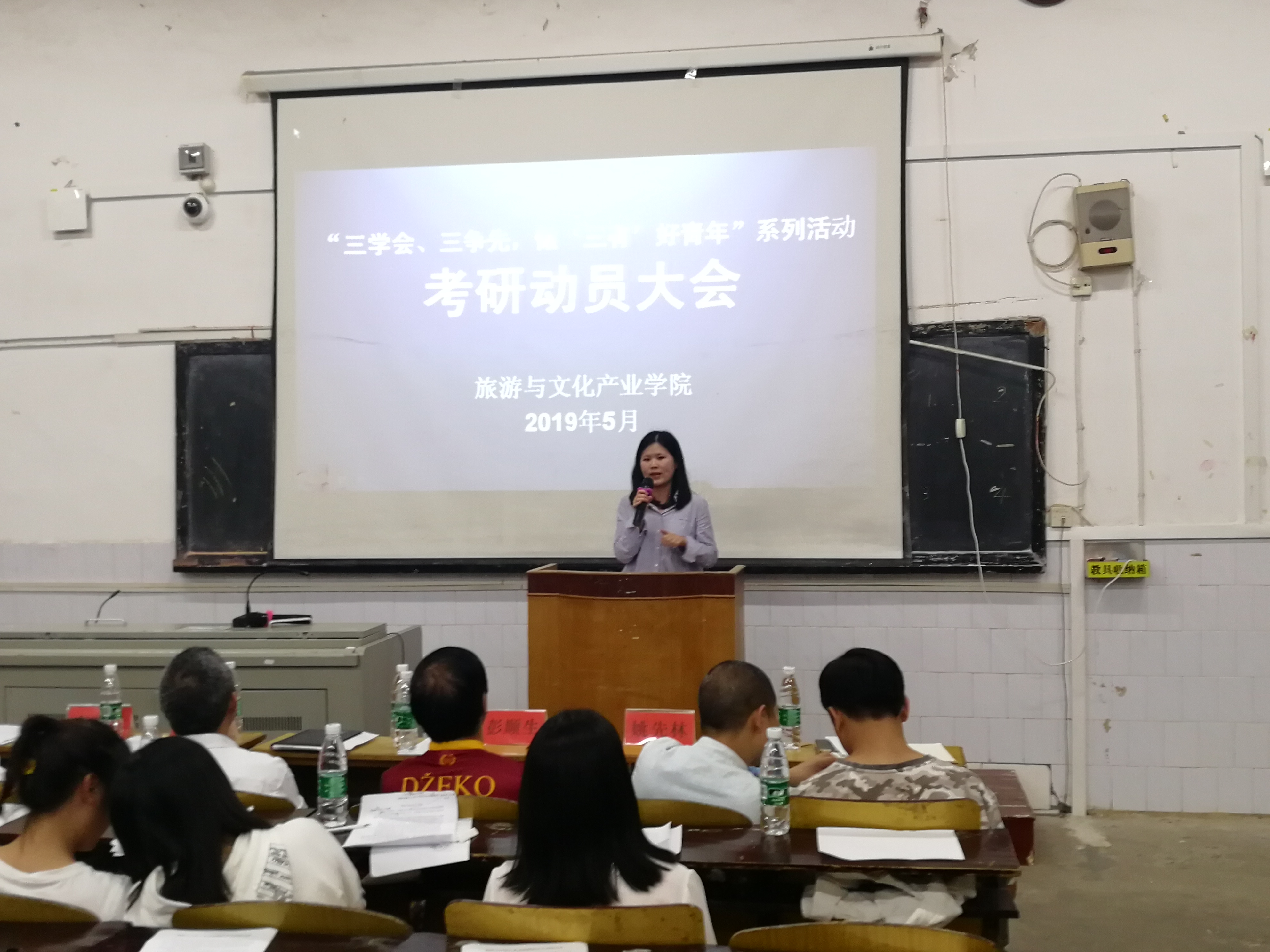 本网讯(通讯员 尹遥)为进一步加强学风建设,提高学院学生的考研积极性,旅游与文化产业学院于5月21日在博雅楼西三举行考研动员大会。院党总支书记李年终、副院长姚先林、旅游管理系主任李晓红出席会议。会议由党总支副书记潘清远主持。学院大一至大三全体学生参加会议。