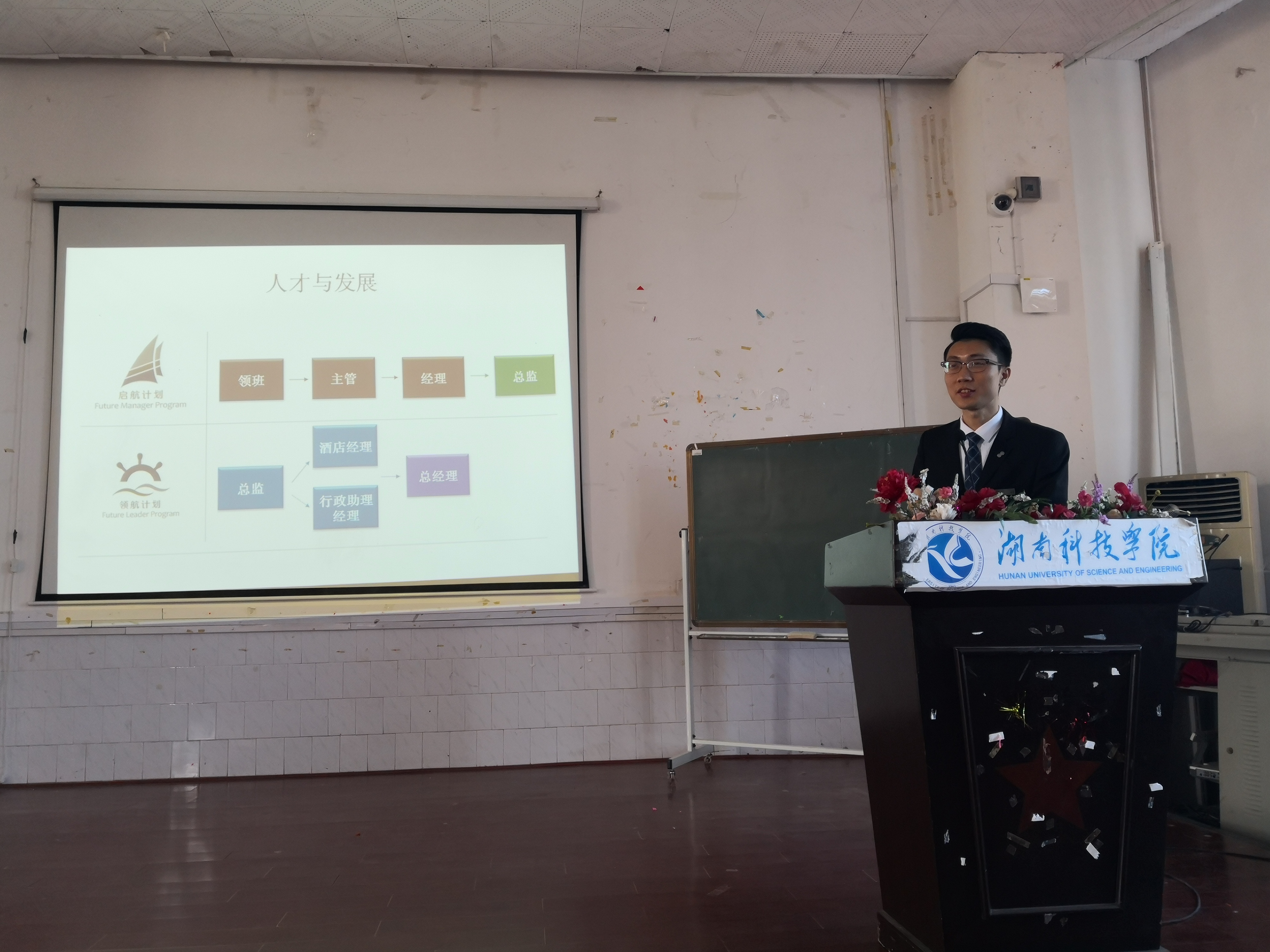 江华县教育局、平安普惠投资咨询有限公司、东莞富力万达文华酒店、北京东方惠人酒店管理有限公司、黄金海岸实业显达酒店等6家单位进行了宣讲,宣讲单位扑面而来诚意感染了毕业生们,通过宣讲让毕业生也更加明确自己的行业选择和定位。
