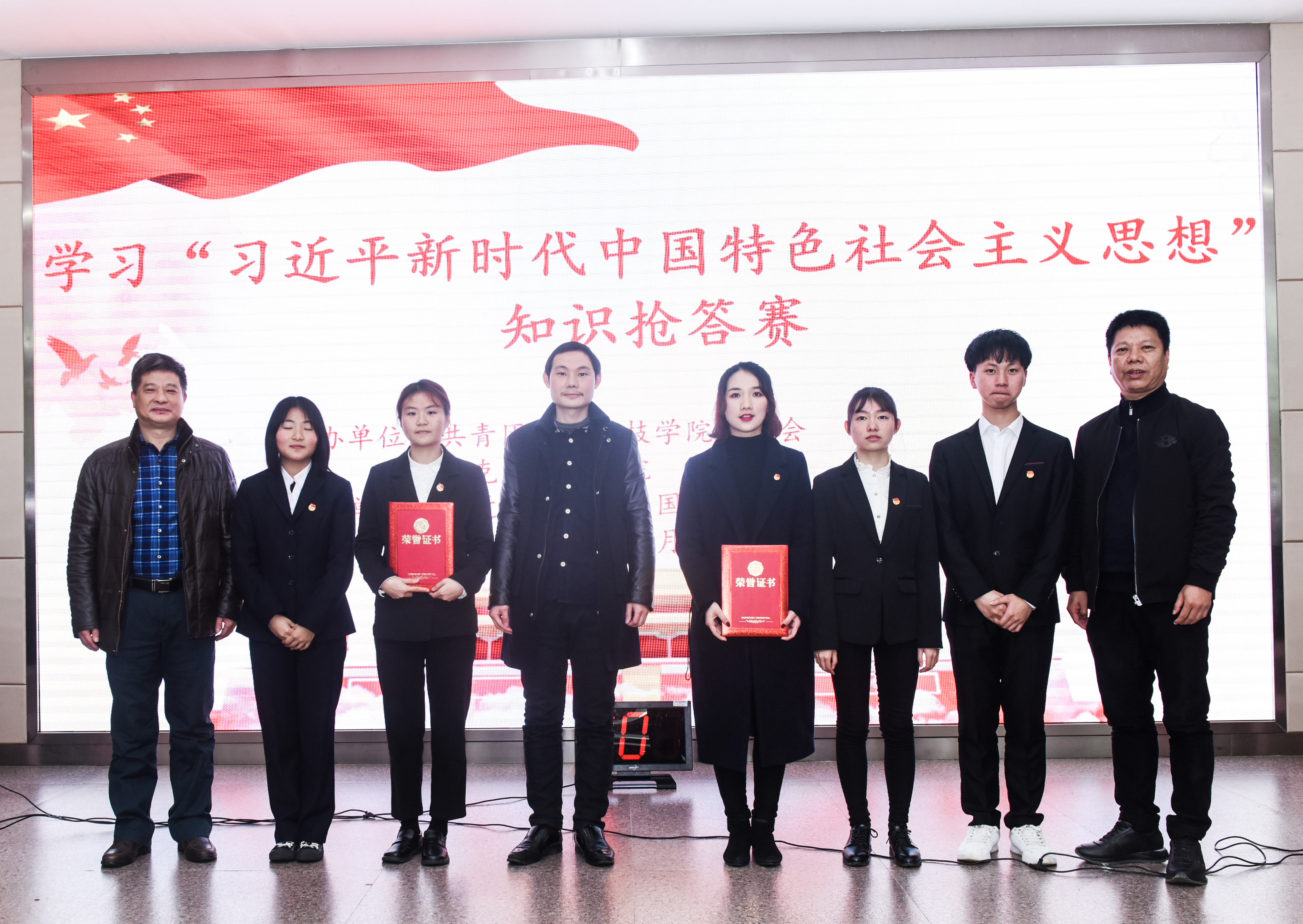 我院经过初赛、复赛的选拔,由肖可率队的代表队成功进入了决赛。本次决赛分为“百花齐放”、“勇往直前”、“意气风发”、“眼疾手快”四个环节,设置了选择、填空、抢答、听歌识曲等题型,竞赛内容丰富,涵盖了习近平新时代中国特色社会主义思想、十九大报告、党章党史、时事政治、红色经典等内容。比赛中,我院选手沉着冷静、密切配合,在各个答题环节中稳扎稳打,积极踊跃的回答每一道题,展示了他们强大的知识储备和应对能力。在我院的参赛选手、智囊团及方阵的共同努力下,最终我院取得了第二名的好成绩。