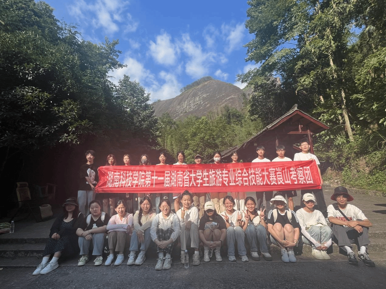 本网讯(通讯员 林嘉豪) 根据第十一届湖南省大学生旅游专业综合技能大赛相关要求,旅游与文化产业学院于2024年7月7日至7月8日精心策划了一场深入崀山的考察实践活动。参赛同学和指导老师共同前往世界自然遗产地——崀山,展开为期两天的深度学习与探索之旅。