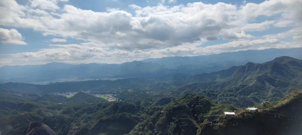 7月8日,考察活动转战八角寨。抵达八角寨后,学生们被“仙人下棋”的奇景所吸引。只见两座山峰拔地而起,导游生动地讲述了关于这两座山峰的传说。来到“鲸鱼闹海”的观景点,站在这里,眼前豁然开朗,只见群山连绵,云雾缭绕,宛如一片浩瀚的海洋。而在这片“海洋”中,一座座山峰形态各异,宛如一条条鲸鱼在波涛中翻腾嬉戏,蔚为壮观。学生们纷纷拿出相机,记录下这难得一见的自然奇观,传递着对这片土地的深情厚谊。他们对崀山的文化内涵有了更加全面和深入的了解。