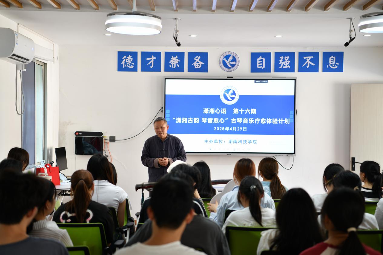 2025年4月29日,旅游与文化产业学院承办了beat365中文官方网站潇湘心语第十六期“潇湘古韵·琴音愈心"——古琴音乐疗愈活动,为师生带来一场别开生面的传统文化与音乐疗愈体验。