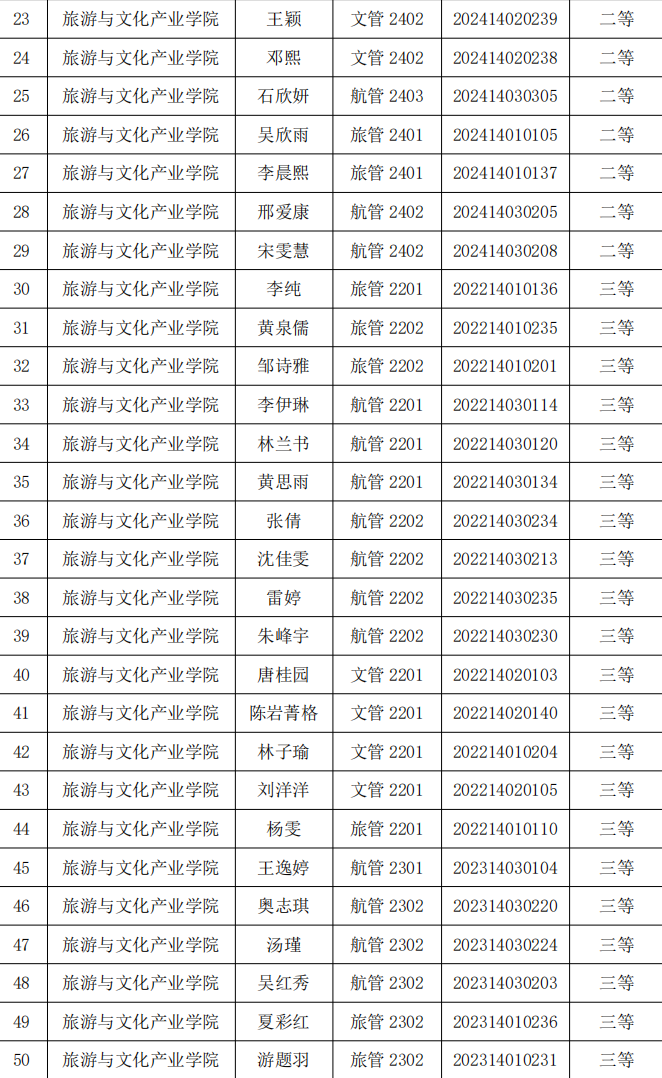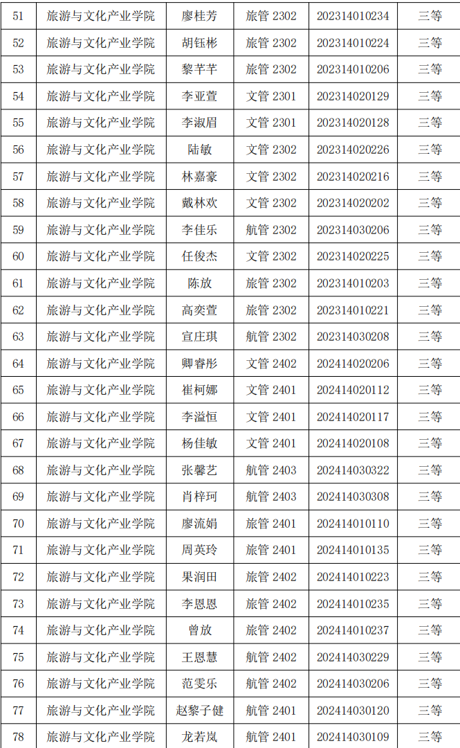 旅游与文化产业学院 2024-2025 学年校级优秀学生