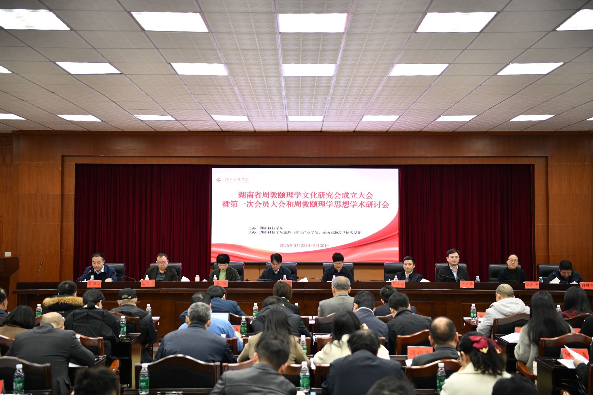 湖南教育新闻网讯(通讯员 黄渊基 向薛峰)3月29日,湖南省周敦颐理学文化研究会成立大会暨第一次会员代表大会和周敦颐理学思想学术研讨会在beat365中文官方网站举行。省内外相关高校、科研院所的专家学者及周子后裔、国际友人以及该校师生代表近300人参加会议。会议审议通过了《湖南省周敦颐理学文化研究会章程》等文件,选举产生第一届理事会,黄渊基当选会长,陈仁仁、郭园兰、陈敬胜、李红文、姚先林当选副会长,姚先林同时兼任秘书长。研究会还审议通过了财务管理制度、印章管理制度、档案管理制度等相关制度,通过了专家委员会名单和设立了秘书处等办事机构。