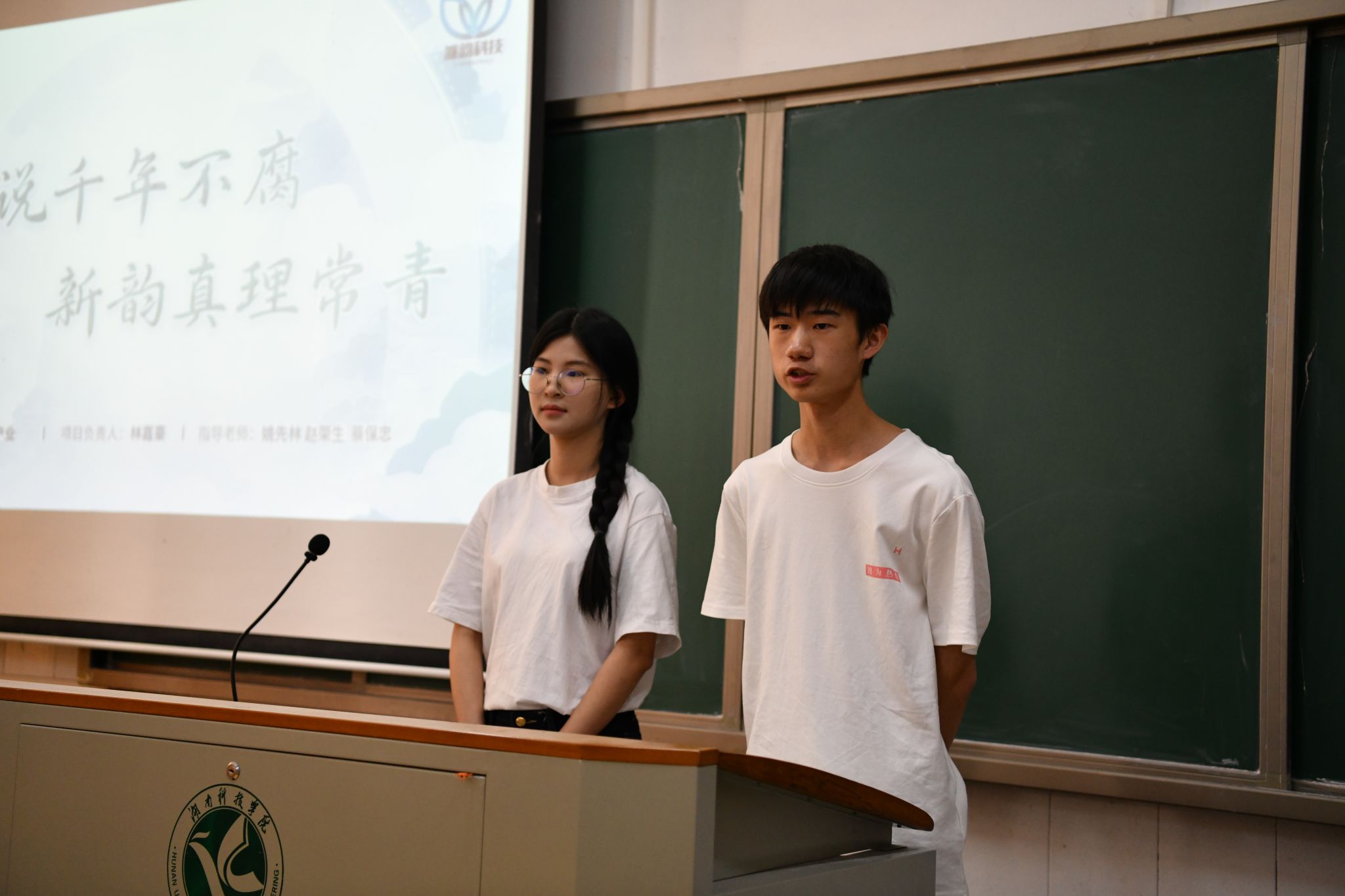 在紧张激烈的现场问答环节,评委老师们紧紧围绕项目各个关键维度展开提问,例如项目的创新性、商业可行性、团队协作以及现场展示等方面进行了提问,参赛选手们也根据自己的见解进行了回答,赢得了评委和观众的一致好评。