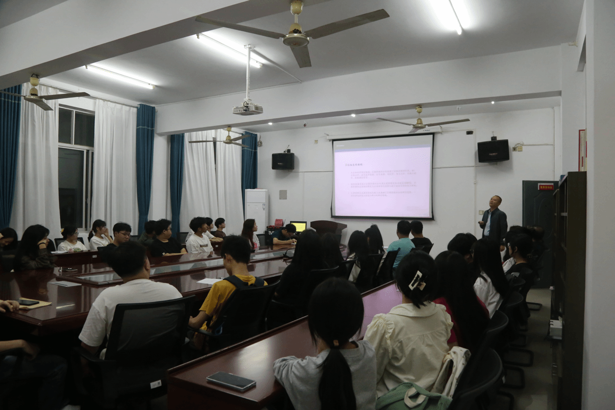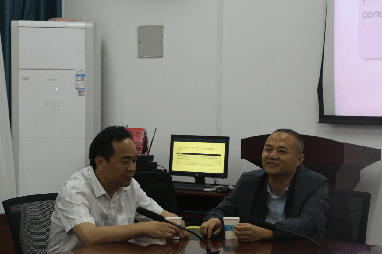 在讲座中,黄承代首先从固体力学、流体等领域中的分岔现象出发,介绍了分数阶微分方程分岔理论的产生背景、发展现状、实际应用等。接着针对一类中立型分数阶时滞神经网络分岔问题,从研究动机、研究思路、理论推导和数值实验等展出了该问题的最新研究成果。然后,黄承代跟学生们分享了目前正在从事的研究方向和科研问题。在提问环节,在场的师生积极参与互动,黄承代耐心倾听,详细解答了同学们的疑问。最后,黄创霞校长对讲座进行了总结,并与同学们亲切座谈,向同学们分享了个人科研、求学的经历和心得,鼓励同学们要扎实学好数学,树立信心,敢于创新,做好个人发展规划,通过考研深造等方式,不断提高自身的专业素养和能力。