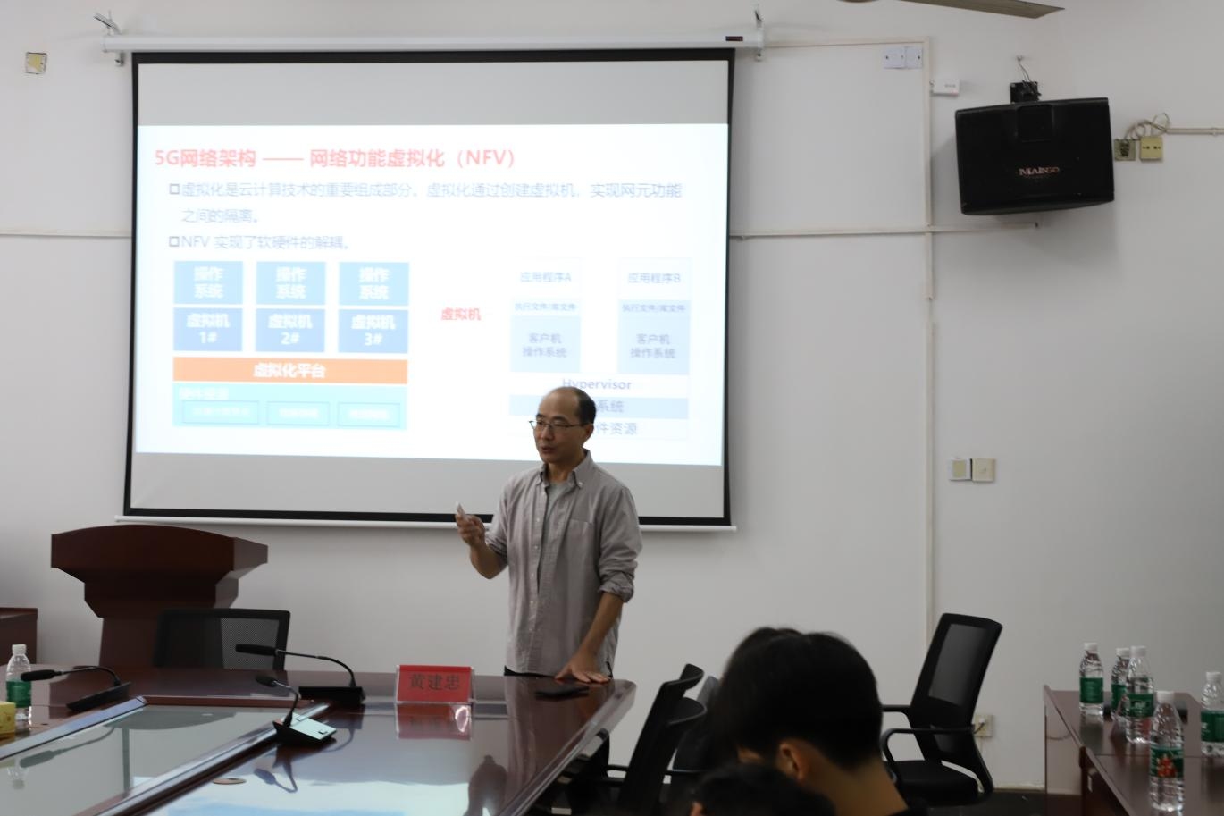 在讲座中,黄建忠首先对通信基础概念进行了介绍。紧接着,他从5G的三个主要场景、应用方向以及网络架构等方面分析了当前5G通信的现状,并对比了5G核心网架构与4G之间的变化。最后,黄建忠分享了关于未来6G发展趋势的见解。