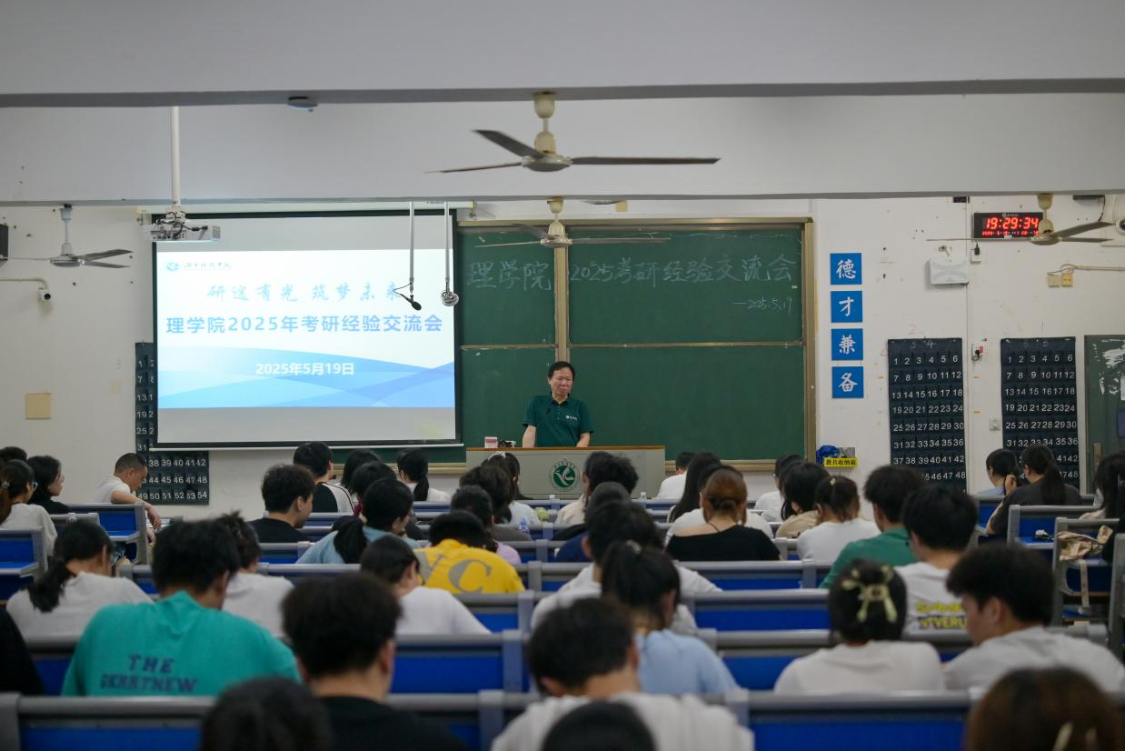本网讯(通讯员:刘康锐)为了带动我院考研气氛,给同学提供一个获取更多考研信息的机会,理学院于5月19日晚在明理楼502开展了考研经验交流会,院长唐耀平、党总支书记刘华、院领导班子及部分班主任出席,交流会由2022级辅导员刘静主持。
