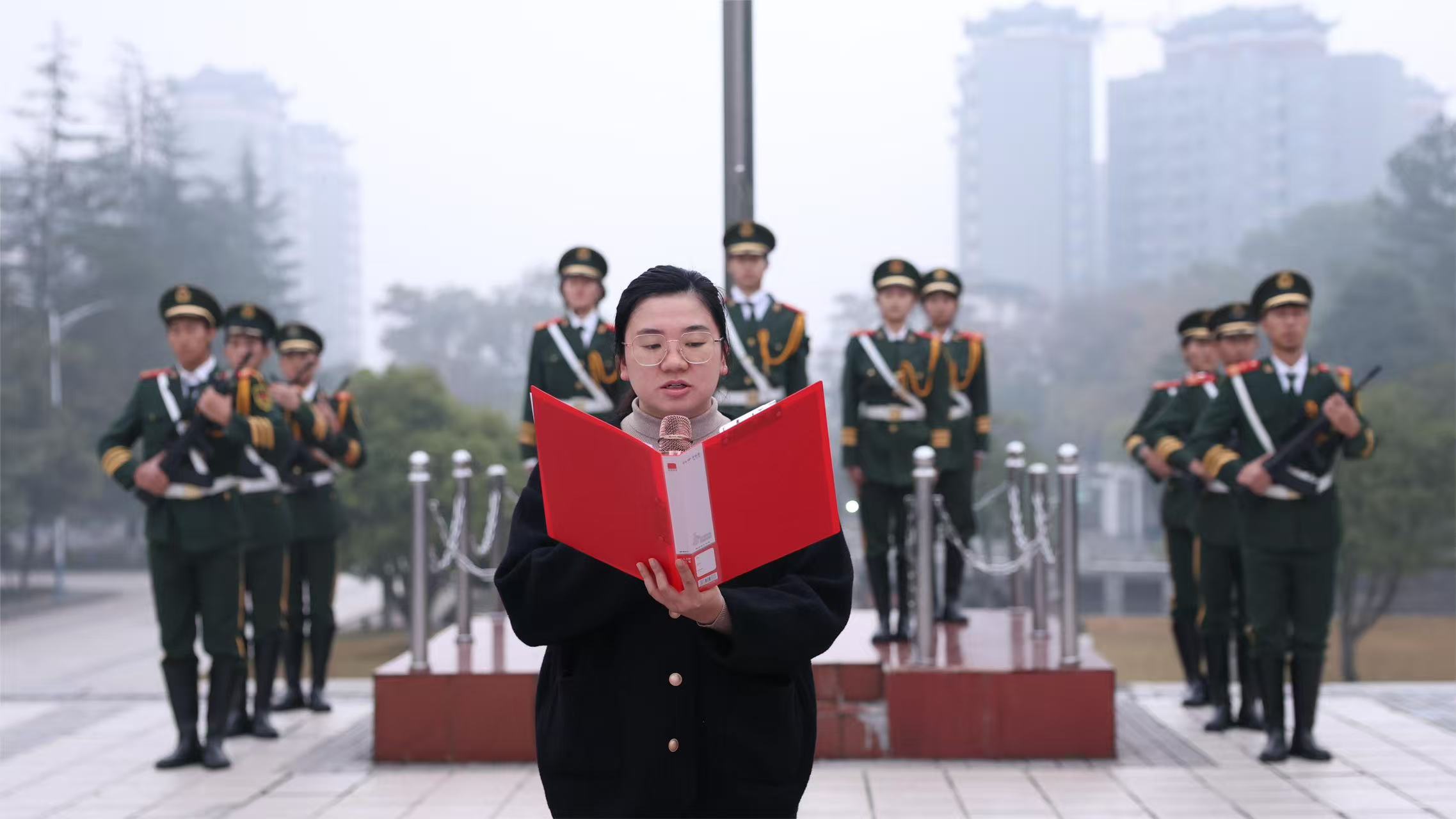 本网讯(通讯员 郭辉宇) 12月8日清晨,理学院在学校文化广场举行升国旗仪式。理学院党总支副书记欧阳素勤、全体辅导员及大一、大二全体学生参加。升旗仪式由学工办主任康平老师主持。
