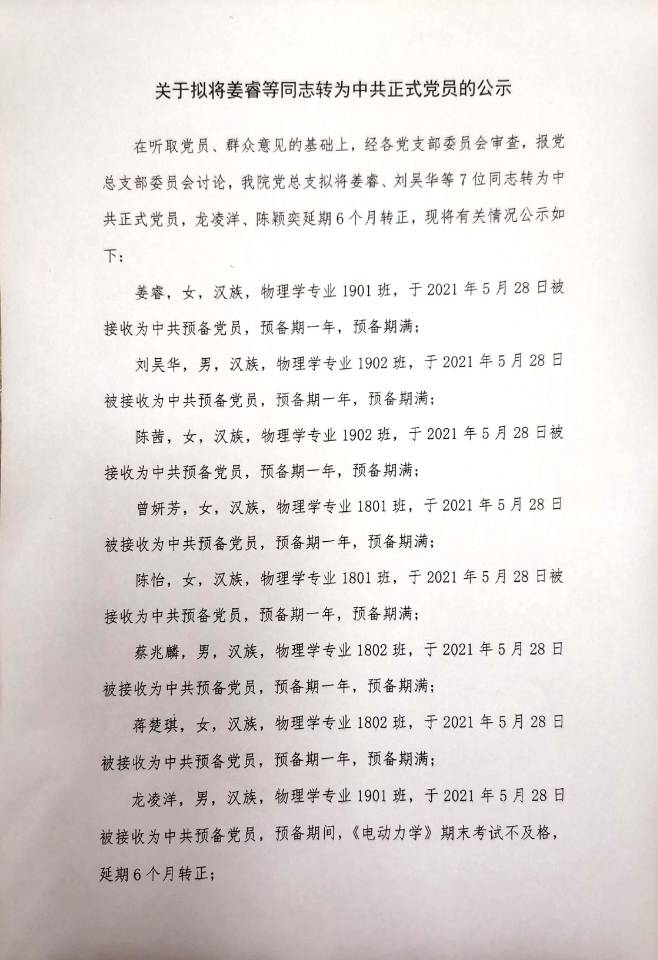 关于拟将刘紫璇等8位同志转为中共正式党员的公示