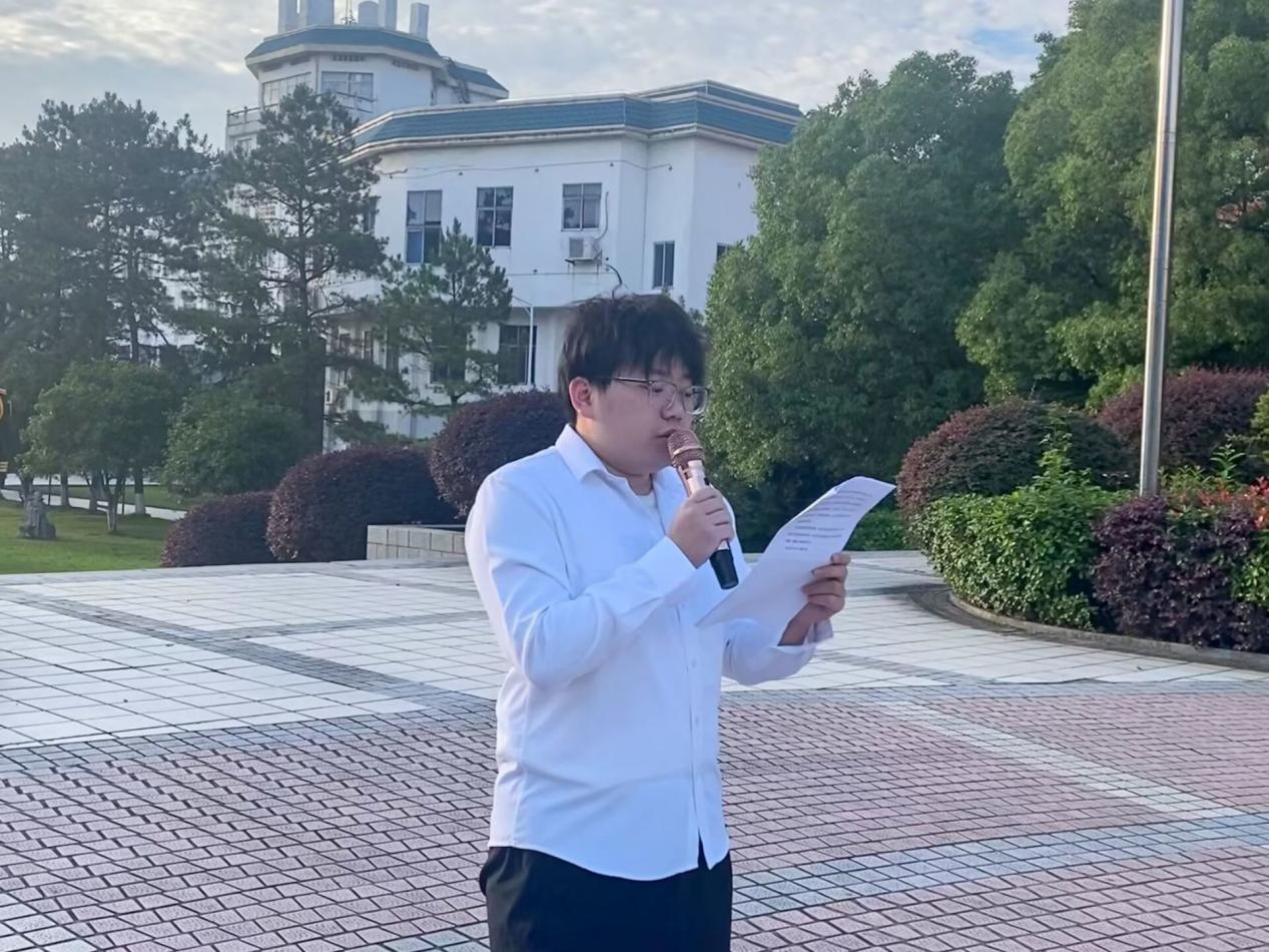 “升国旗,奏国歌,全体行注目礼!”理学院第十四周升旗仪式正式开始。党总支副书记欧阳素勤发表国旗下的讲话,她表示:不吃苦,无青春。青年应要有锤炼“自找苦吃”的自觉,涵养“以苦为乐”的境界,笃定“苦尽甘来”的信心。接着,学生代表信计2101班的王自力同学发言:我们生逢盛世,当不负盛世,我们要努力学习,传承红色基因,为中华民族伟大复兴贡献我们的青春力量。升旗仪式正式结束,同学们有序离场。