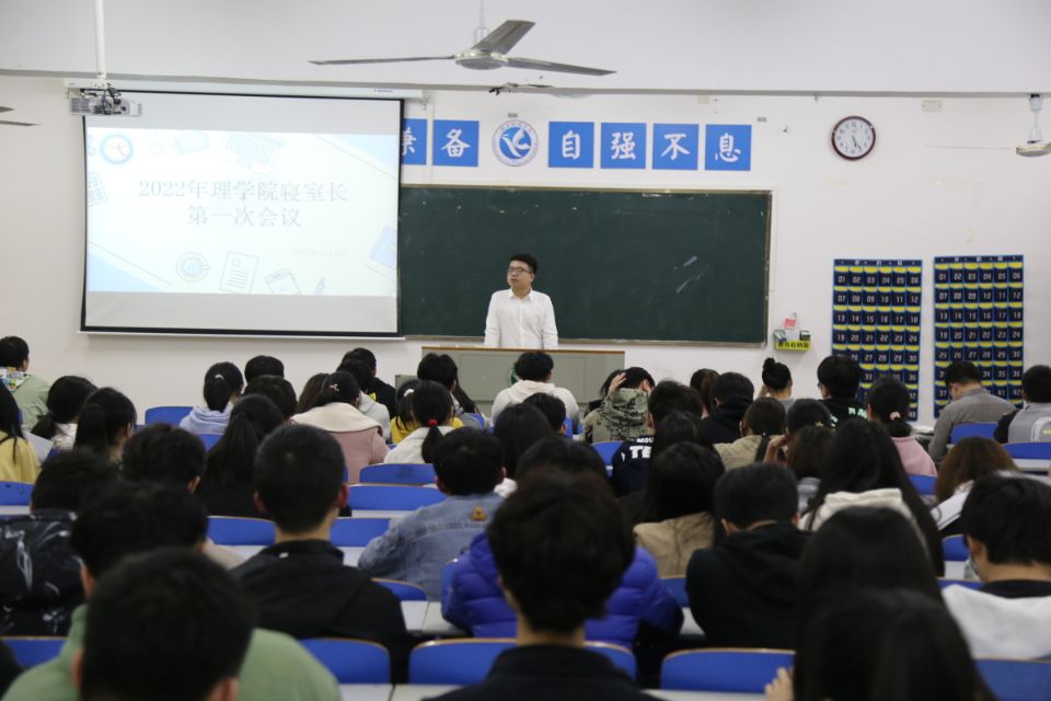 本网讯(通讯员 陈刚)为营造健康、安全的生活氛围,杜绝宿舍安全隐患。理学院于3月3日晚在明理楼召开2022年上学期第一次寝室长例会。党总支副书记兼副院长欧阳素勤、团总支书记兼学工办副主任杜俊杰出席会议。参加会议的还有学院全体辅导员和寝室长,会议由19级辅导员赵江南主持。