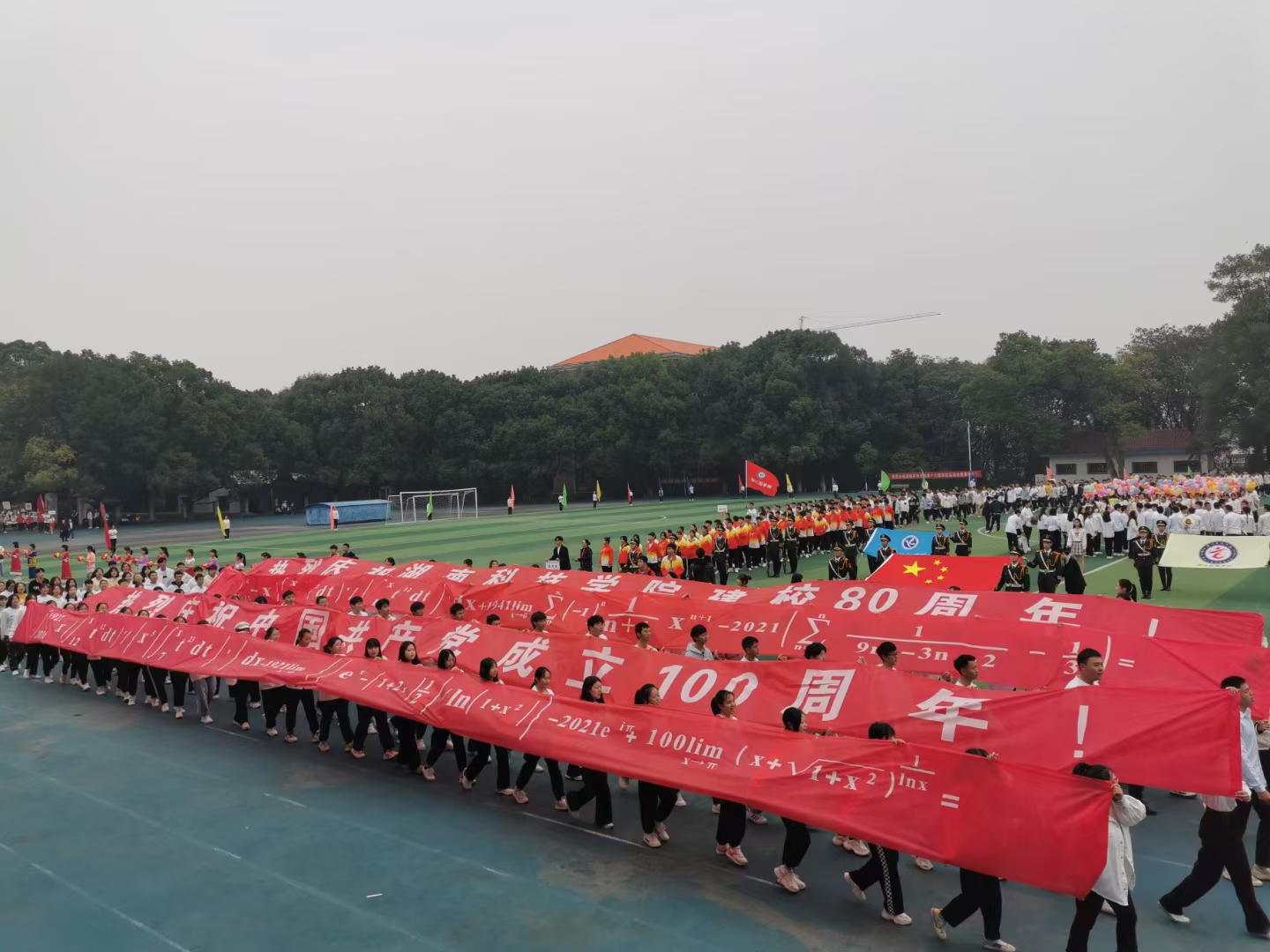 在开幕式上,我院以独有的理学浪漫,借答案为100和80的数学公式,对中国共产党成立100周年和beat365中文官方网站建校80周年表达热烈的祝贺。壮观的阵容,彰显着坚持不懈的信念;坚定而有力的脚步声,衬托出必胜的决心!比赛过程中,那一道道靓丽的身影是我院运动健儿在挥洒汗水;那此起彼伏的呐喊声是啦啦队成员在加油助威;那终点处翘首以待的是我院志愿者在等待运动员们凯旋。