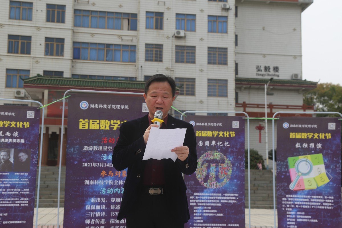 本网讯(通讯员 蒋晓霞)3月14日是国际数学节暨国际圆周率日,为纪念中国古代杰出数学家祖冲之,伟大的物理学家爱因斯坦诞辰142周年,我院于文化广场举行首届数学文化节,理学院院长唐耀平、党总支书记唐卫华、副书记黎建军等莅临活动现场。