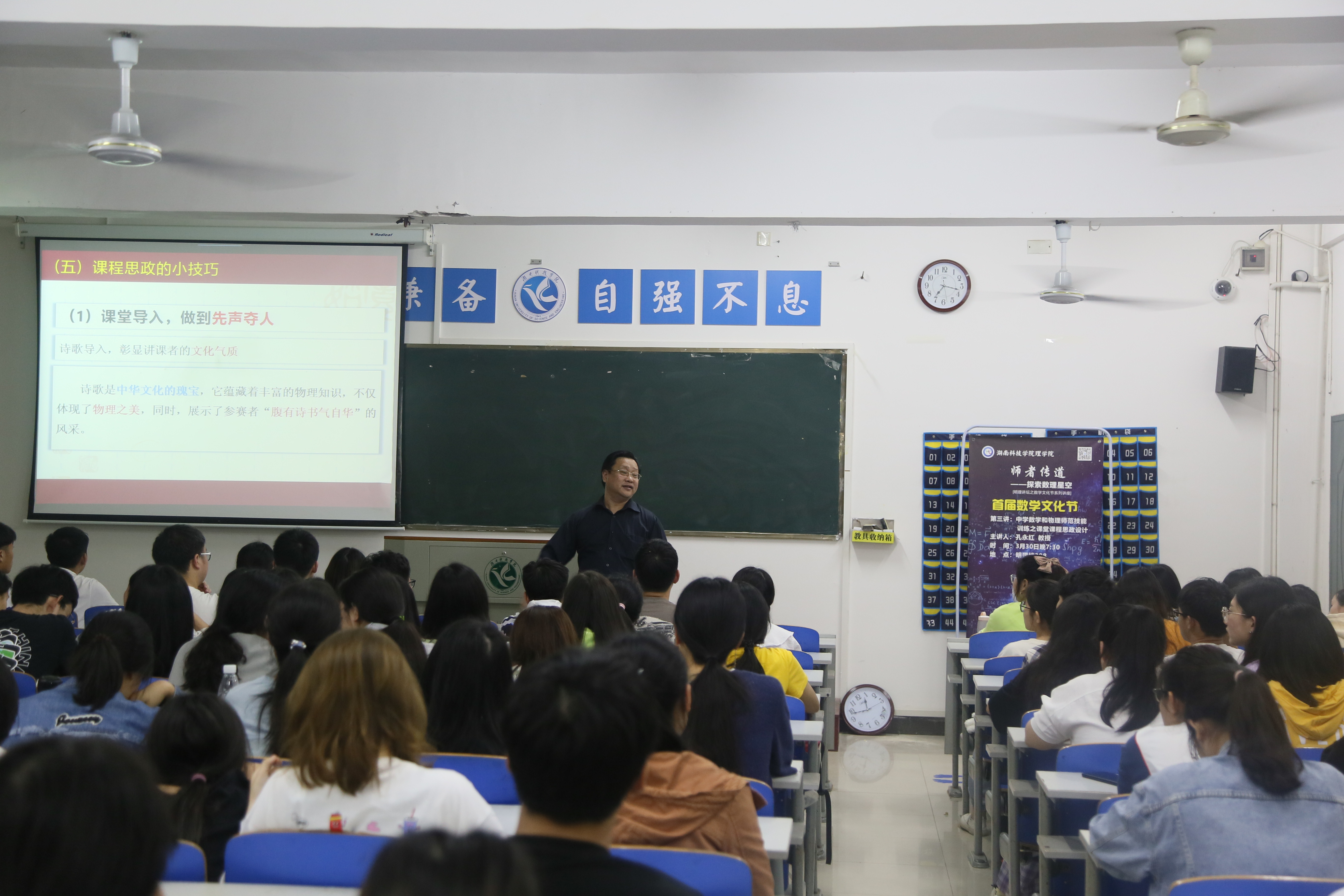 本网讯(通讯员 陈伊)3月30日晚,首届数学文化节之明理讲坛第三讲在明理楼308开讲。为了让同学们更加了解课堂课程思政设计,提升师范技能,孔永红教授为同学们做了题为“中学数学和物理师范技能训练之课堂课程思政设计”的讲座。