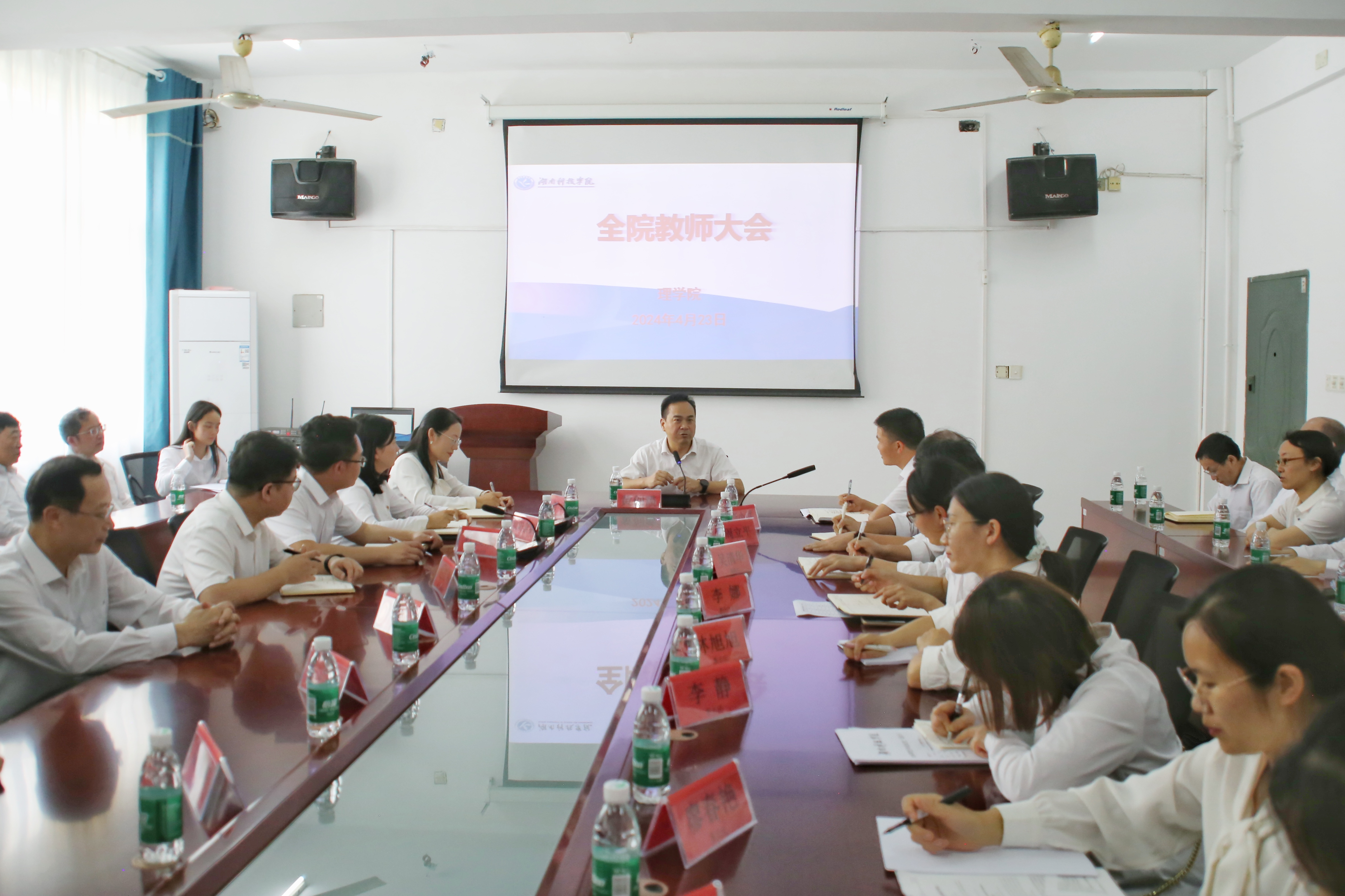 会议由理学院院长李小武同志主持。黄校长充分肯定了理学院近年来取得的优异成绩,并与教师们亲切交流。他勉励学院全体教职工,要主动应变,敢于求变,狠抓教学、科研和育人工作。一是希望学院既要抢抓机遇,又要有忧患意识,并以考研为例启发学院促进工作的思路、方法和技巧;二是希望全体老师尊重学生成长规律和教育规律,苦练内功,并列举了多位省内知名教师的感人事例,鼓励老师们要不断超越,在平凡中创造不平凡,敢于亮出理学院的实力和特色;三是希望全体教师要心往一处想,劲往一处使,深刻领会“人心齐、泰山移”的朴素道理,年轻老师是生力军,老教师要充分发挥“传帮带”作用,每一位教师都是学院依靠的力量,学院要上下齐心,努力凝聚形成团结奋进、干事创业的火热氛围。黄创霞校长在谈到“教育家精神”时,非常深情的和老师们分享,教育的本质是一棵树摇动另一棵树,一朵云推动另一朵云,一个灵魂唤醒另一个灵魂,作为教师要多一点纯粹,多一点诗和远方。