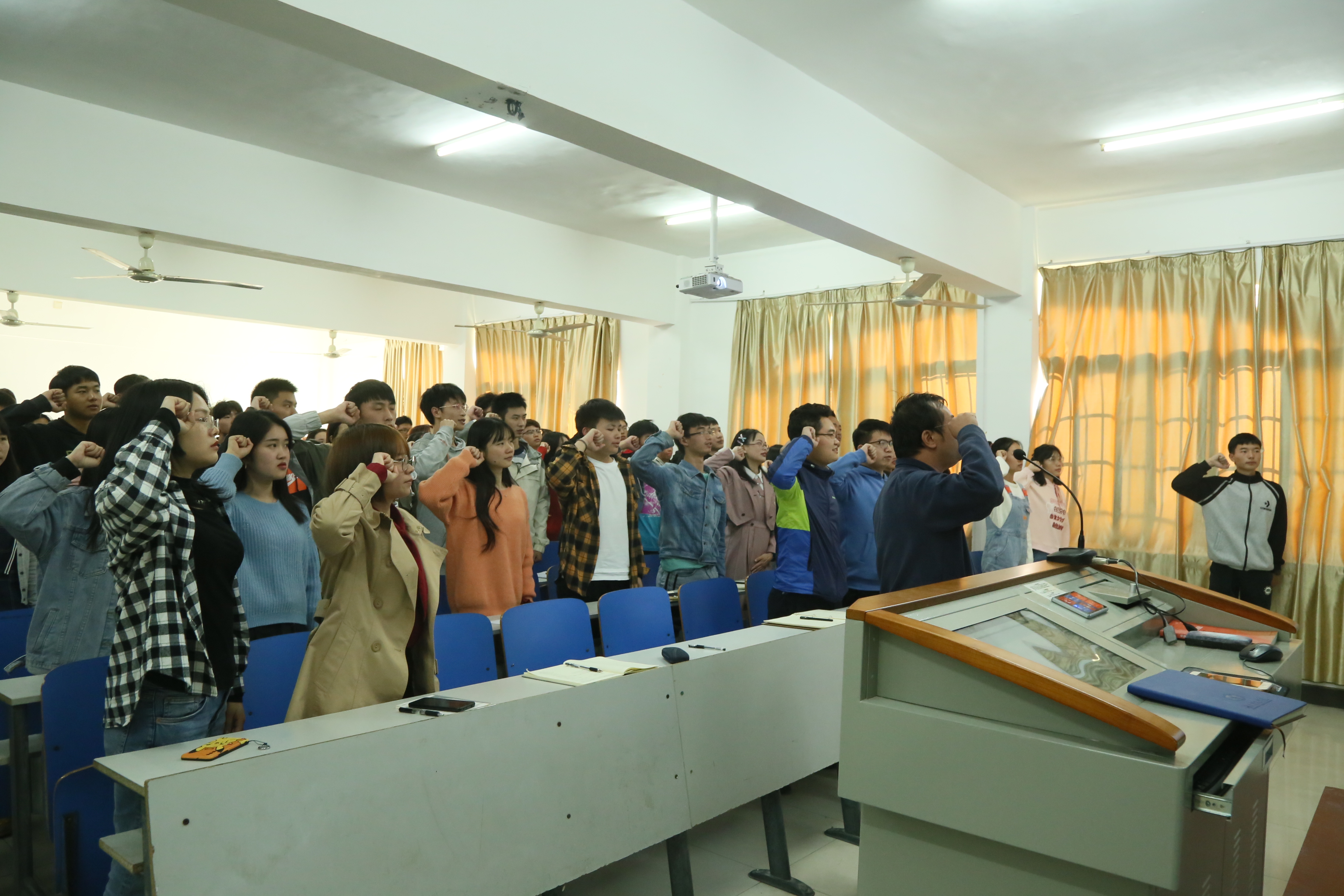 党总支副书记黎建军对本次会议进行了总结,他提出三点要求:一是坚持党的领导,二是加强学习,三是勇于担当,认真履责。最后,他带领团学联全体成员进行了宣誓。