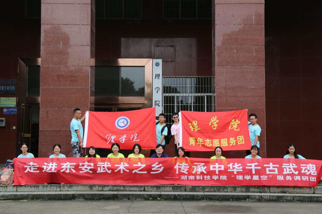 本次调研活动得到了东安县委宣传部、东安教师发展中心的大力支持,东安县委常委、宣传部部长唐华栋和教师发展中心主任宋和明等一行于当地为调研团举行了欢迎仪式。理学院领导、东安教师发展中心领导和全体三下乡成员参加了此次欢迎仪式。唐华栋对三下乡全体人员表示了热烈欢迎,他表示此次调研对东安武术文化是一种宣传,也希望调研队员们抓住这次机遇,从调研中学习到东安的武术文化和德文化。理学院党总支副书记唐卫华表示,“理学星空”调研团将走进东安武术之乡,传承中华武术之魂,完成好本次“三下乡”社会实践。