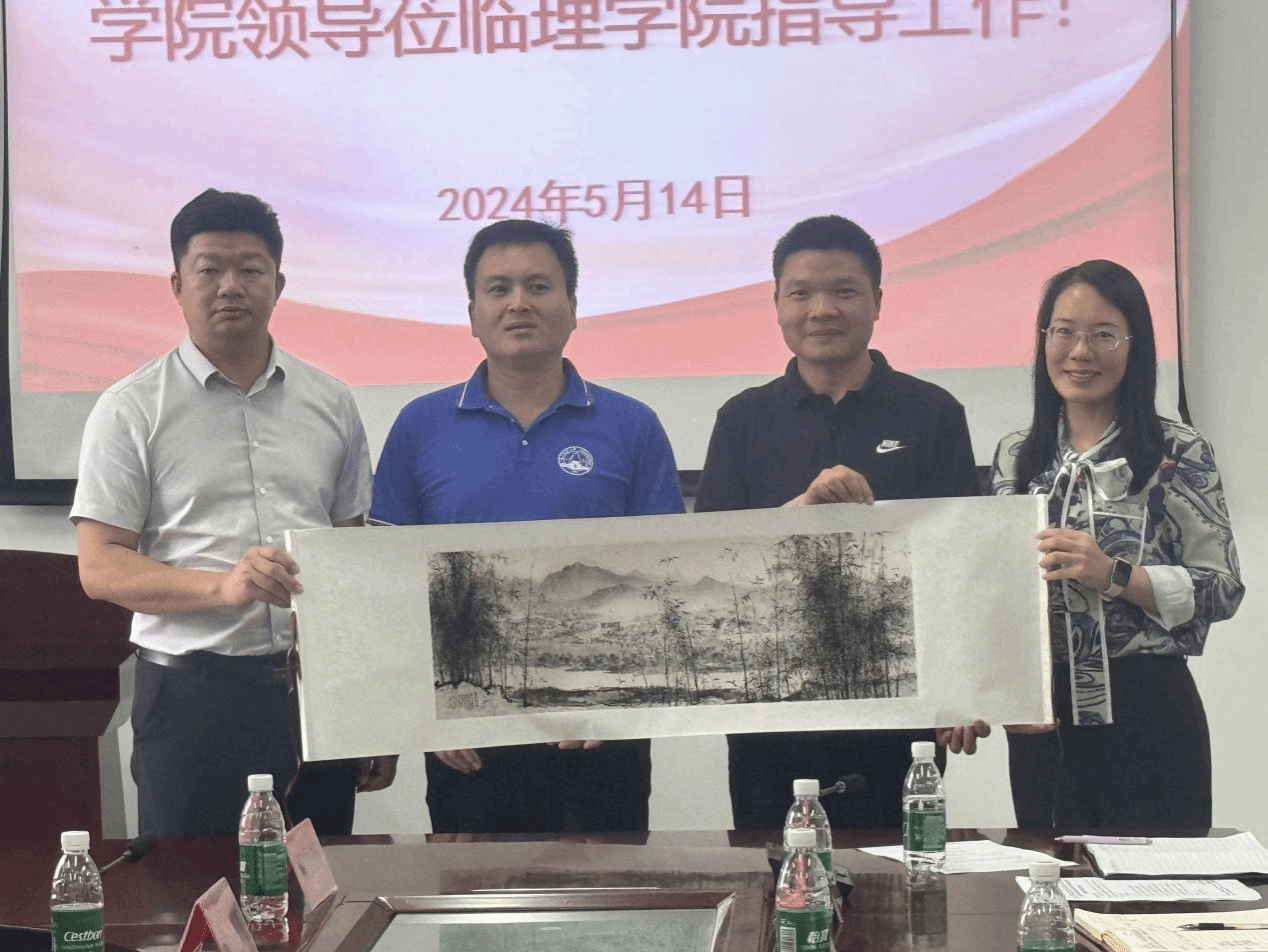 交流会上,李小武院长首先致辞欢迎。接着,双方就考研以及就业工作、人才引进、学科和专业建设三个方面进行了深入探讨。李小武院长简要介绍了我院近年来在考研和专业建设工作方面的成绩。随后,张映辉就考研形势、备考策略、院校选择进行了分析,分享了该校在考研服务方面的成功经验。随后陆锋书记与刘华书记围绕学生就业创业指导工作开展深入交流。交流会结束后,广西师范大学数学与统计学院院长张映辉赠与我院一幅国画彰显情谊,画中所描绘的是广西师范大学雁山校区的一处美景。