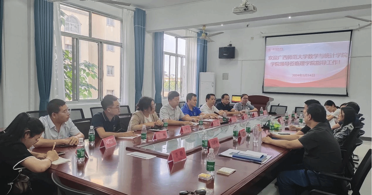 本网讯(通讯员 曾鑫 龙枚樱)为加强与兄弟院校的交流学习,514日下午,广西师范大学数学与统计学院院长张映辉、党委书记陆锋一行受邀莅临我院,于明理楼313开展交流工作。理学院院长李小武、党总支书记刘华等领导老师参会。