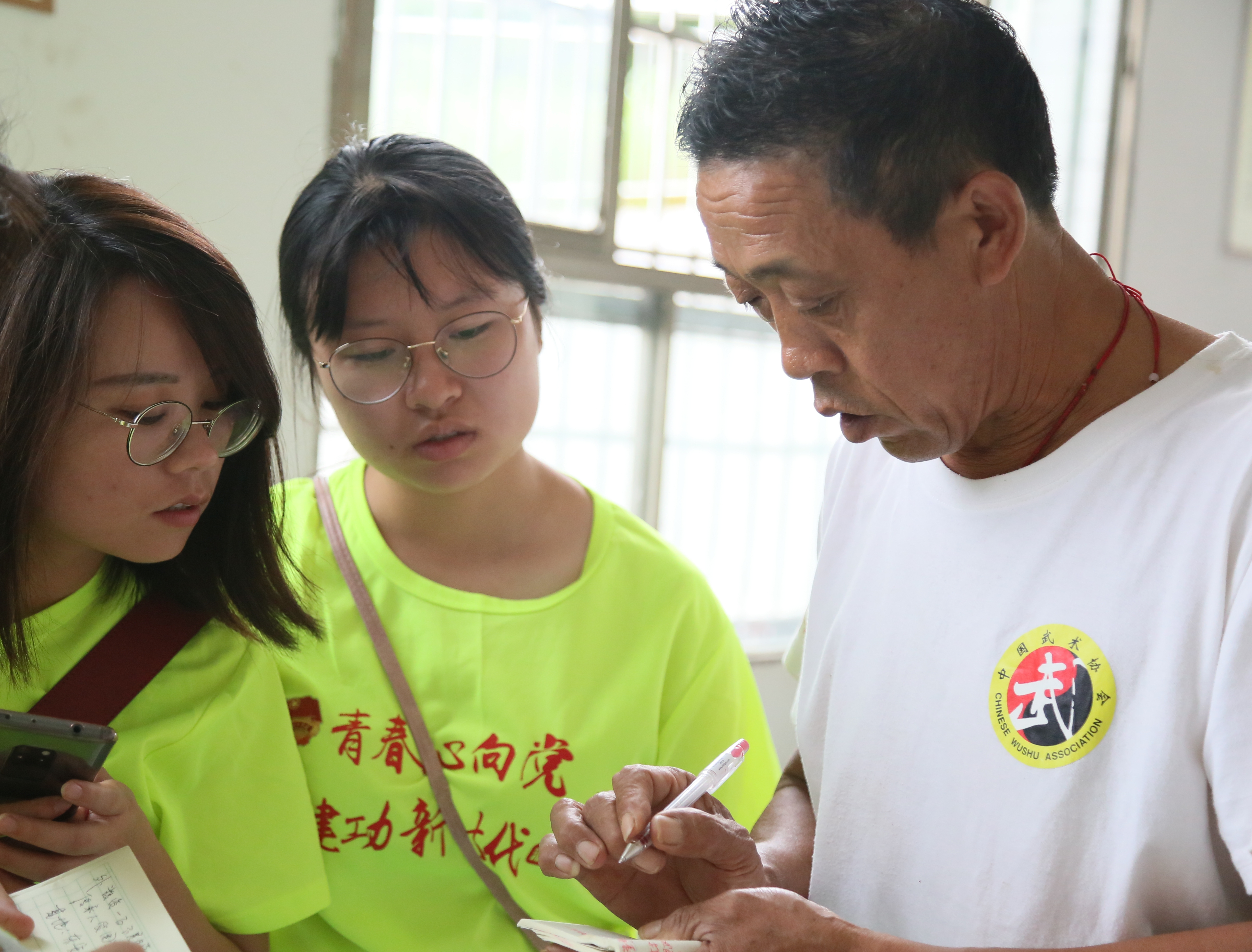 下午,“理学星空”服务调研团拜访了居于东安县川岩乡的“黑虎拳”传人蒋练斌。蒋练斌对调研团的到来表示热烈欢迎,他热情地为调研团介绍了“黑虎拳”。东安“黑虎拳”脱胎于福建南少林寺少林拳,融合了东安特色,蒋练斌自己也大胆创新,并创建湘东练斌精武馆,广招门徒,传承东安功夫,将“黑虎拳”发扬光大。蒋练斌也告诉调研团:“练武可以锻炼人的意识、筋骨,习武之人练武要以苦为乐。”