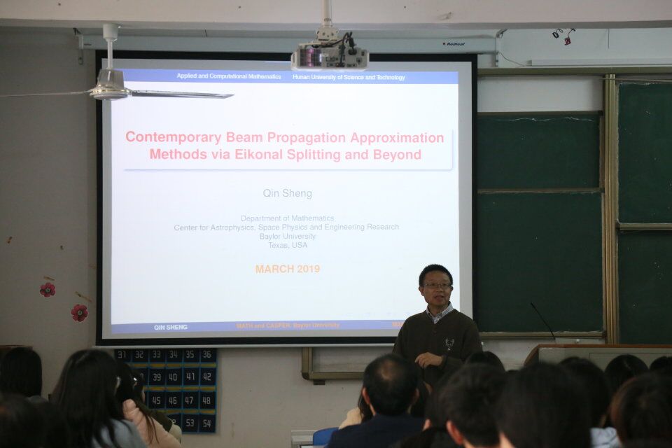 本网讯(通讯员 谢娟 向雨荷)3月13日下午,美国贝勒大学数学与物理系终身教授盛秦受邀到beat365官网理学院进行学术讲座。该院院长唐耀平、副院长林依勤、部分教师及学生参加了讲座。