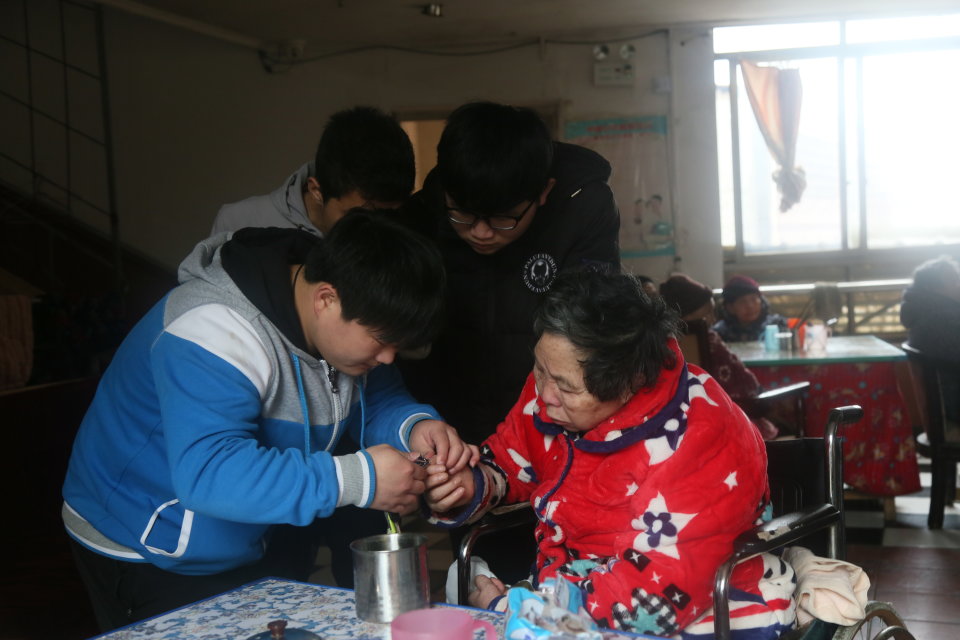 上午志愿者一行三十余人于beat365中文官方网站东门口集合,随后前往康达敬老院。在到达敬老院与负责人取得联系后,志愿者们被分为三组分别陪同一、二、三楼的老人们聊天。志愿者和老人面对面交流,关切的询问了老人的身体状况,听他们讲述自己年轻的故事,老人的健谈和志愿者热情的服务让冷清的敬老院顿时充满了欢声笑语,老人的脸上洋溢着幸福满足的笑容。志愿者们纷纷为老人们唱起了《明天会更好》、《父亲》、《东方红》等歌曲,老人们也随声附和。王先文爷爷嘱咐大家:“你们是学知识最好的时候,现在一定要树立恒心,抓住学习的机会,这样才能学好学快,不能让自己放松,不要怕苦,先苦才有后甜,作为年轻人,不能忘记过去,要往前看,要一代更比一代强!”最后,志愿者们依依不舍的和老人们告别了。