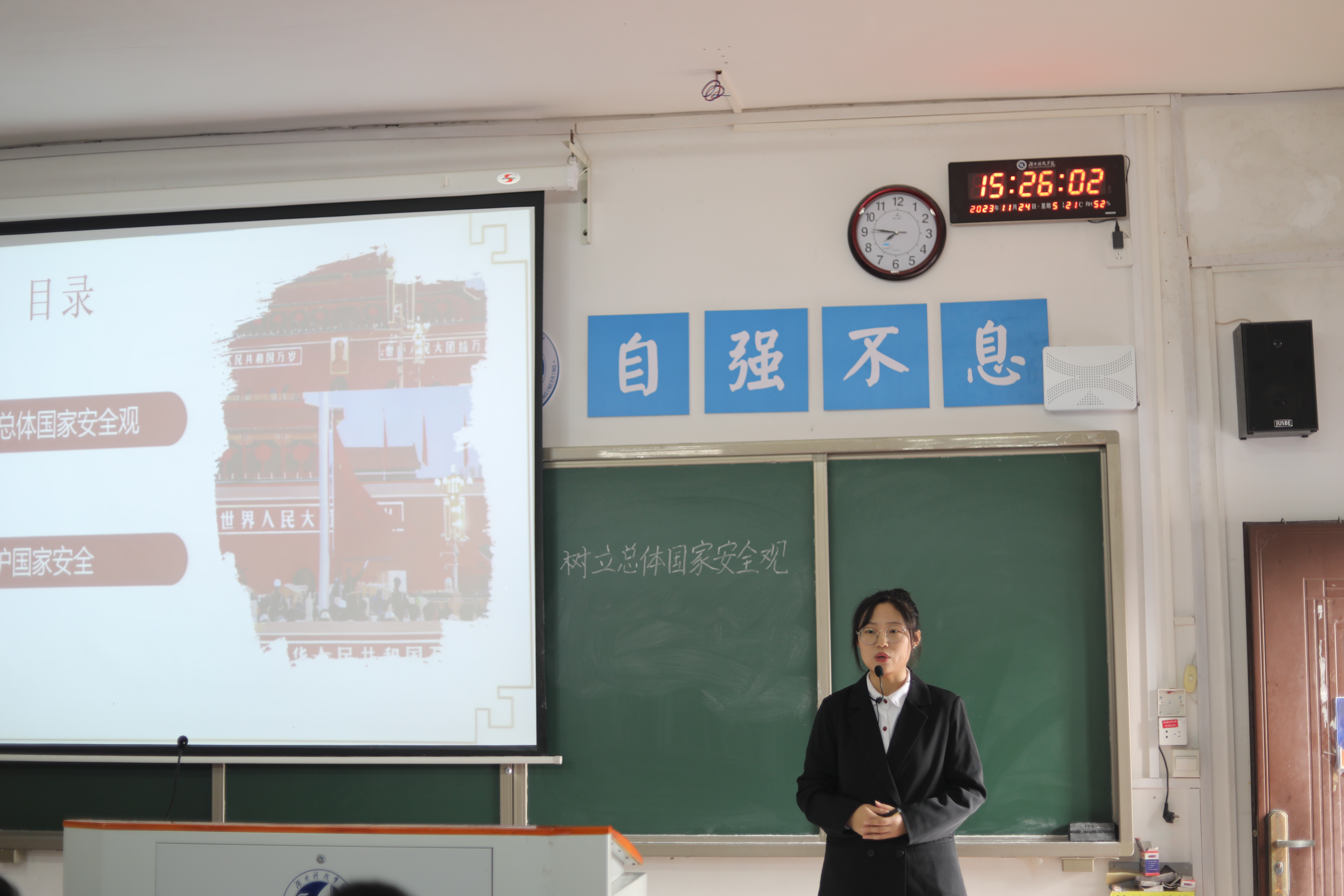 “诚信是立身之本,法治乃安国之源”深藏blue队主讲人郎金雪循循善诱,抛出诚实守信四字词语,以纯朴的道德感言阐释信义,传递出深沉持久的精神力量;“人生最大的幸福,莫过于为人民的幸福奋斗”,你说的都队主讲人王婧以生动共情的话语感染台下观众,诉说着服务国家、奉献社会、守护人民的青春誓言;从容应队主讲人张晶莹凭借着巧妙的构思、宽广的学科视野饰演多位劳动楷模,他们的伟大事迹掷地有声,撞击着人们的心灵并激起共鸣。