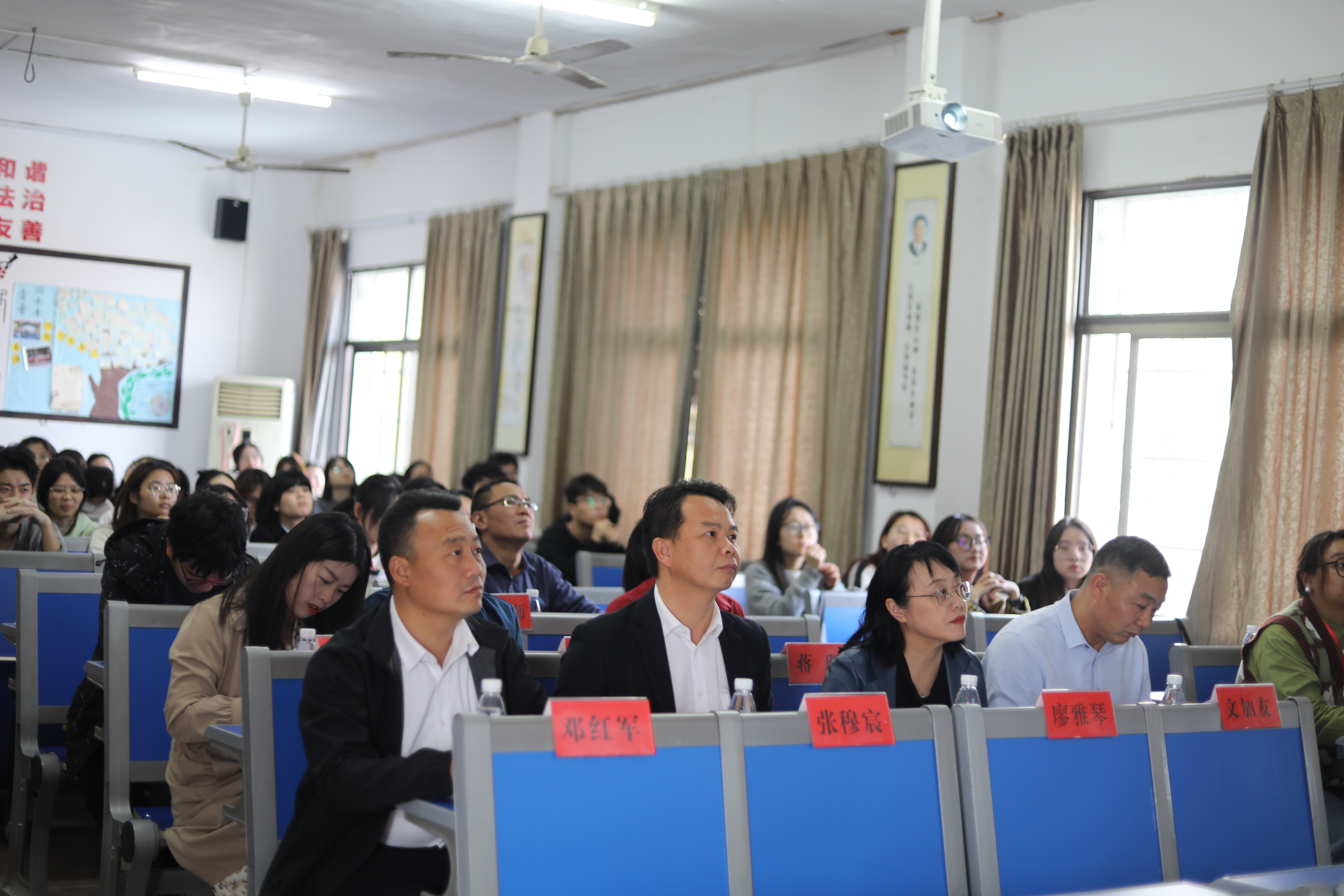 本次大赛邀请到市委宣传部副部长张穆宸、市委宣传部理论科科长邓红军、市委宣传部宣教科科长蒋理、马克思主义学院院长廖雅琴、马克思主义学院副院长杨军、永州市教育局教科院政治教研员—中学高级教师文加友等担任评委,大赛由张遨宇同学主持。