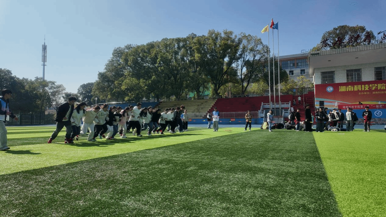 本网讯(记者 陈欣怡 吴美林)为进一步丰富校园课余生活,引导学生积极参与体育运动、深化团队合作精神培养。11月22日,校学生会劳动生活部主办的2025年第三届“一站式”学生社区文化艺术节之“同心寝力,竞逐未来”绑腿跑比赛在学校大田径场热血开赛。