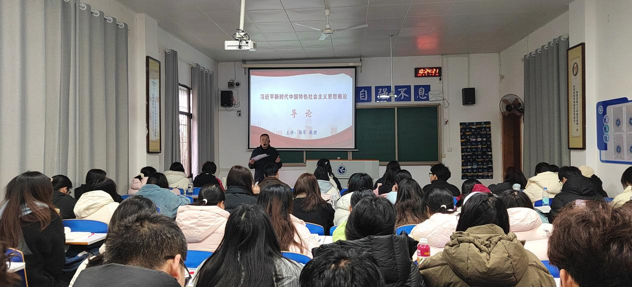 本网讯(通讯员 陈小燕)为深化教研活动与课堂教学的融合,提升思政课程教学质量,3月3日上午,我院“习概”课教研室在鹤鸣楼407教室开展“教研走进课堂”活动,组织教研室全体教师观摩马克思主义学院原副院长杨军教授主讲的《习近平新时代中国特色社会主义思想概论》导论专题课程。