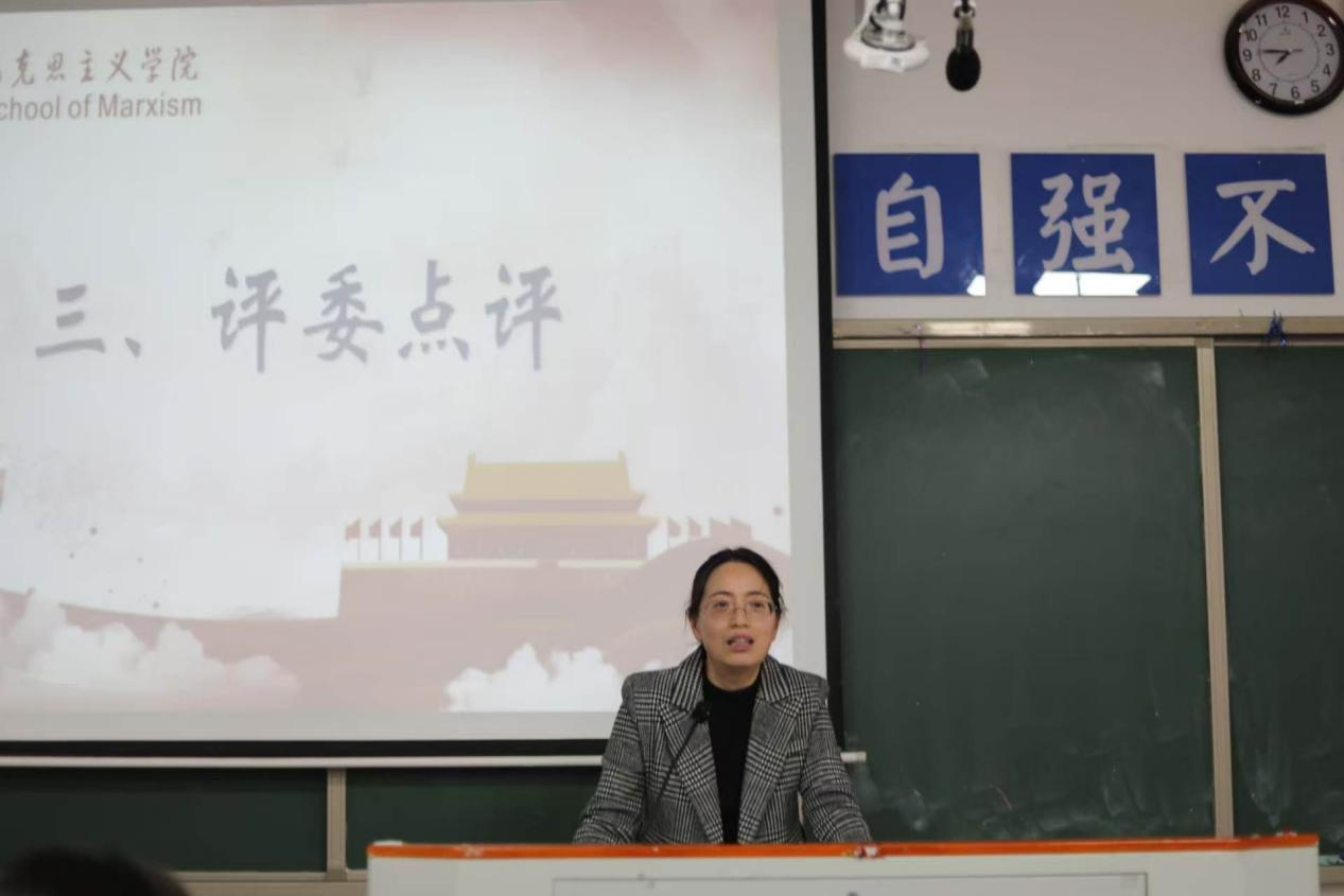 参赛选手全部展示完毕后,评委吴讷老师对选手们的整体表现予以肯定,她强调教学案例的选择必须紧密服务于教学知识点,还指出部分选手知识点衔接不够流畅、层次不够清晰的问题。随后,评委张恒艳老师对选手们选用时事热点融入课堂的做法表示赞赏,使得思政教学更具生动性与深刻性;同时,她也指出部分选手教案设计重点不突出、层次逻辑不够清晰、语言表达缺乏抑扬顿挫感染力不足等问题,并给出了针对性改进建议。