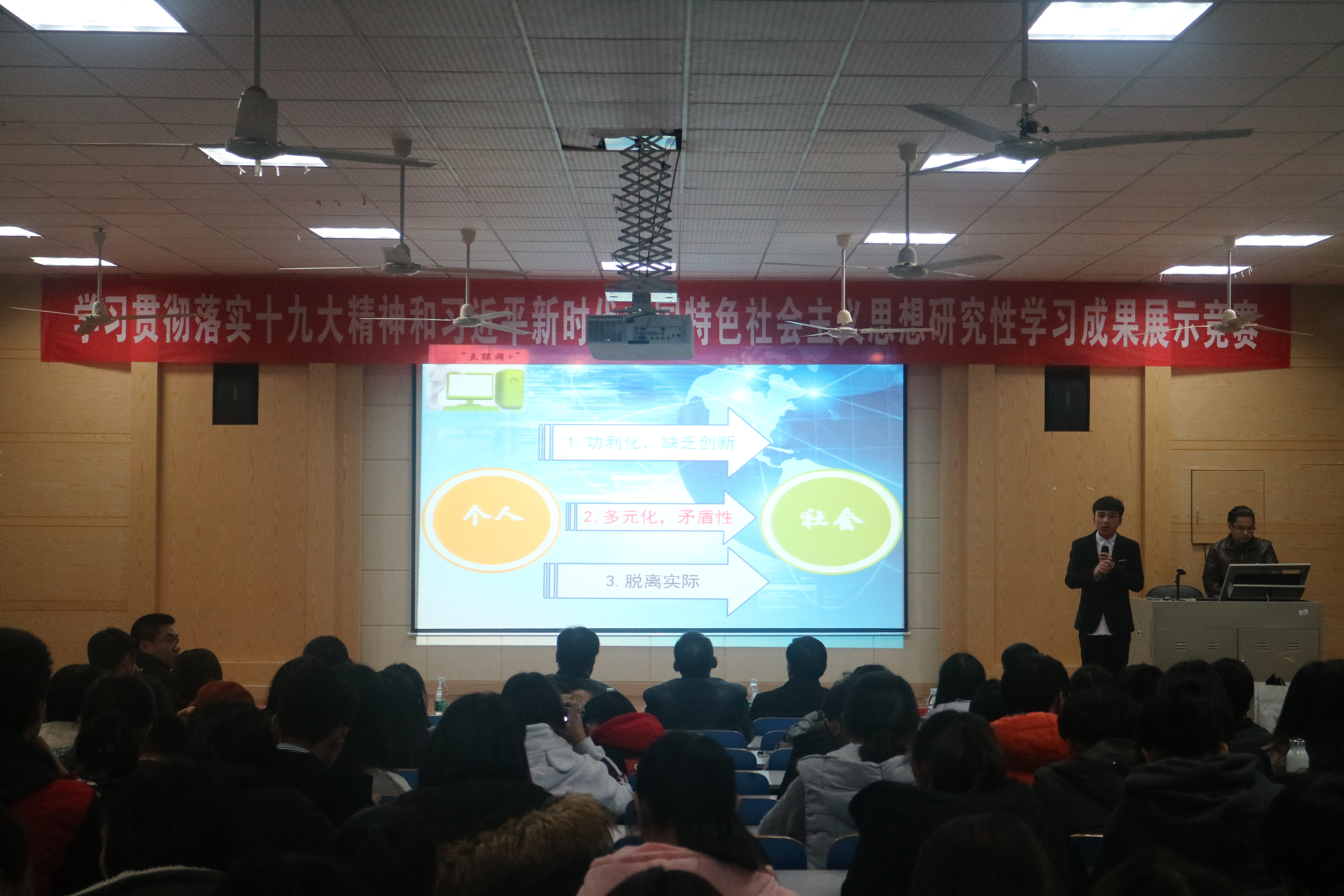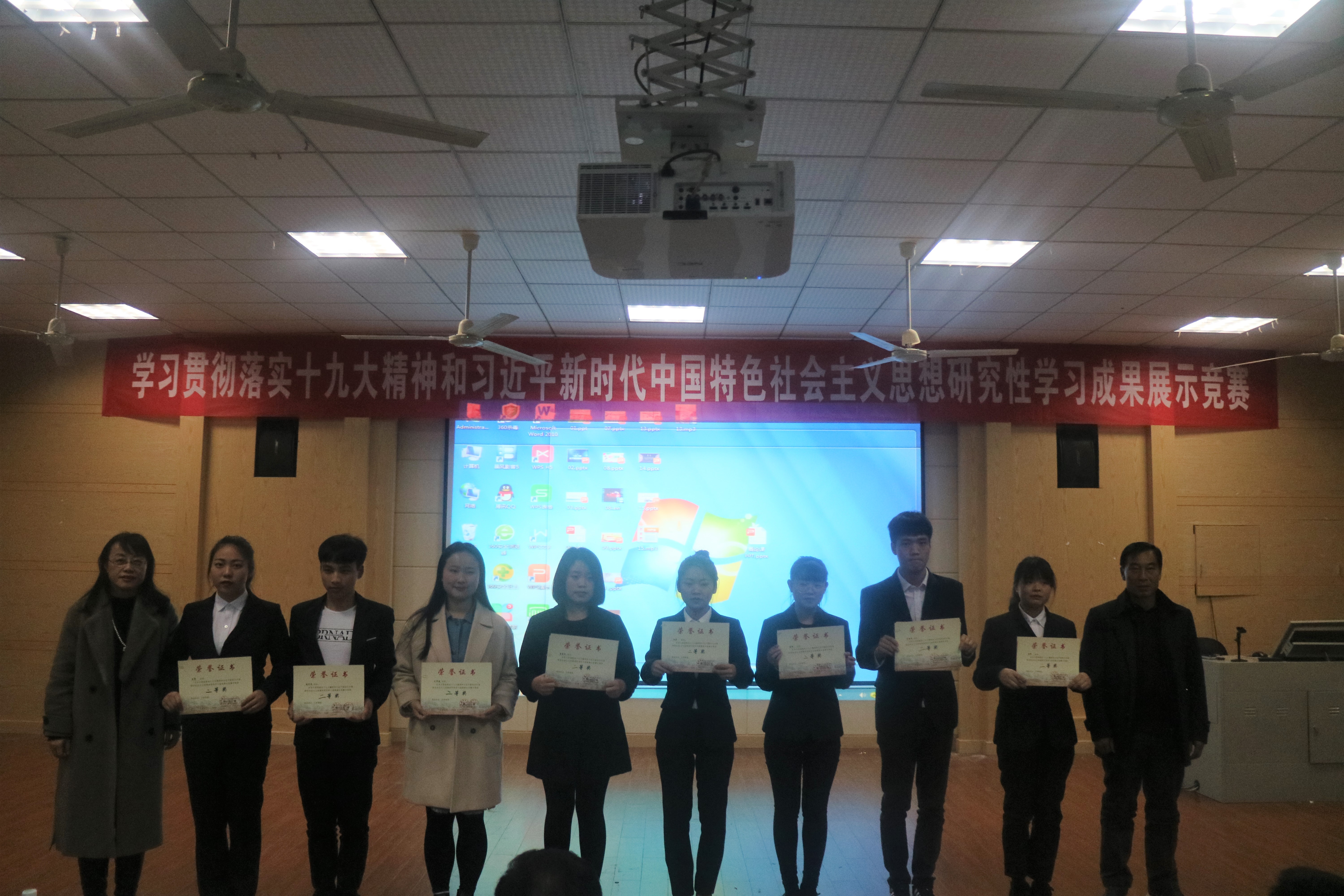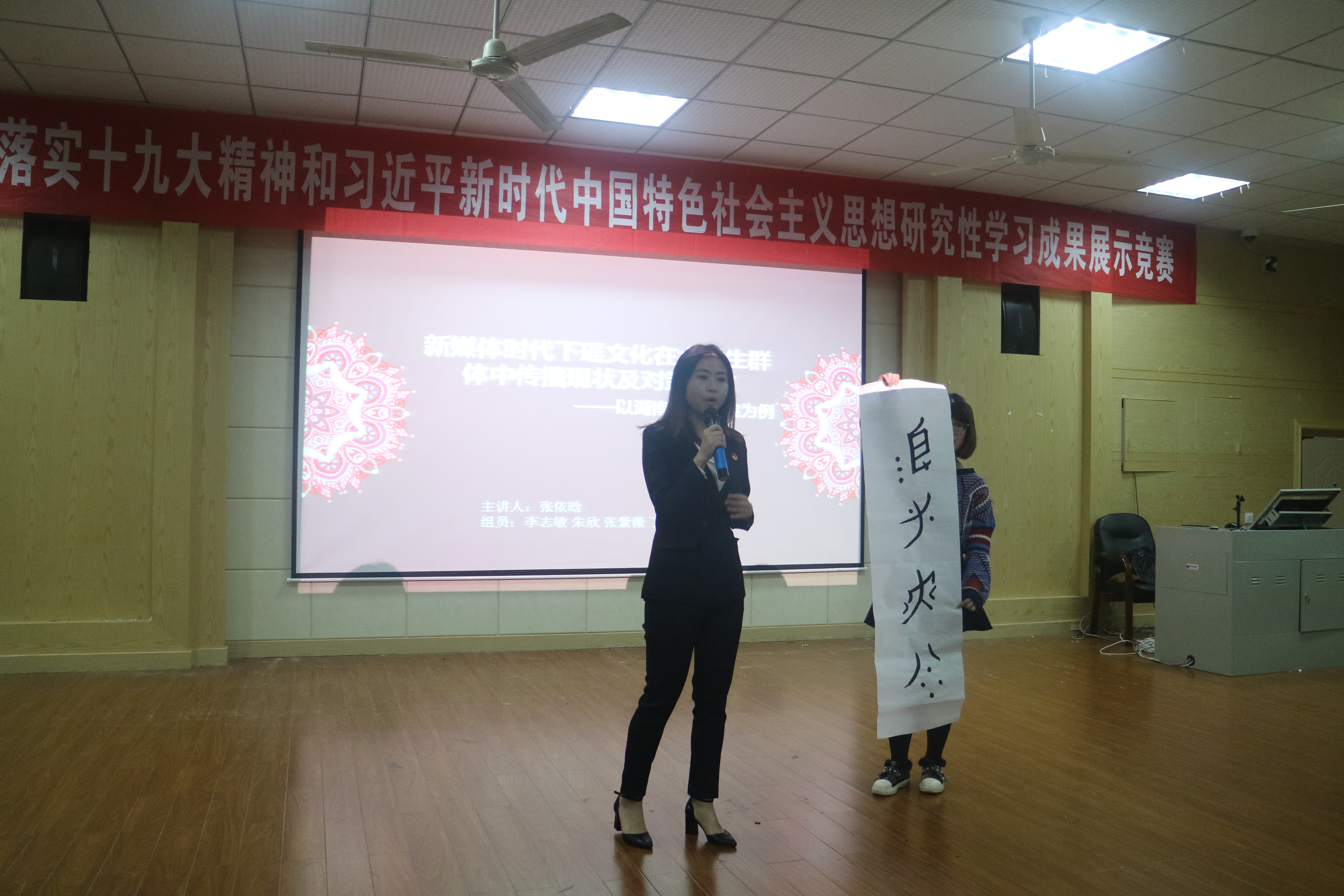 本网讯 (通讯员 张亚娟)12月26日晚,马克思主义学院在致远楼701举办beat365中文官方网站学习贯彻落实十九大精神和习近平新时代中国特色社会主义思想研究性学习成果展示竞赛活动。此次共30个作品参加决赛展示。比赛中,各小组分别从“选题意义”、“研究成果”、“研究中存在的不足及进一步研究设想”及“研究性学习收获”等几个方面展示研究性学习报告。作品《湘科院学生健身情况调查》针对学生身体素质锻炼提出合理性建议,以新颖的微视频鼓励学生积极参加体育锻炼、强健体魄。作品《乡村振兴之路——永州香零山村发展现代化农业及旅游调研》讲述了香零村富起来的历程并提出在互联网时代山村循坏发展、健康发展的新路线。各参赛小组用针砭时弊的眼光,提出一系列可行措施,赢得观众阵阵掌声。
