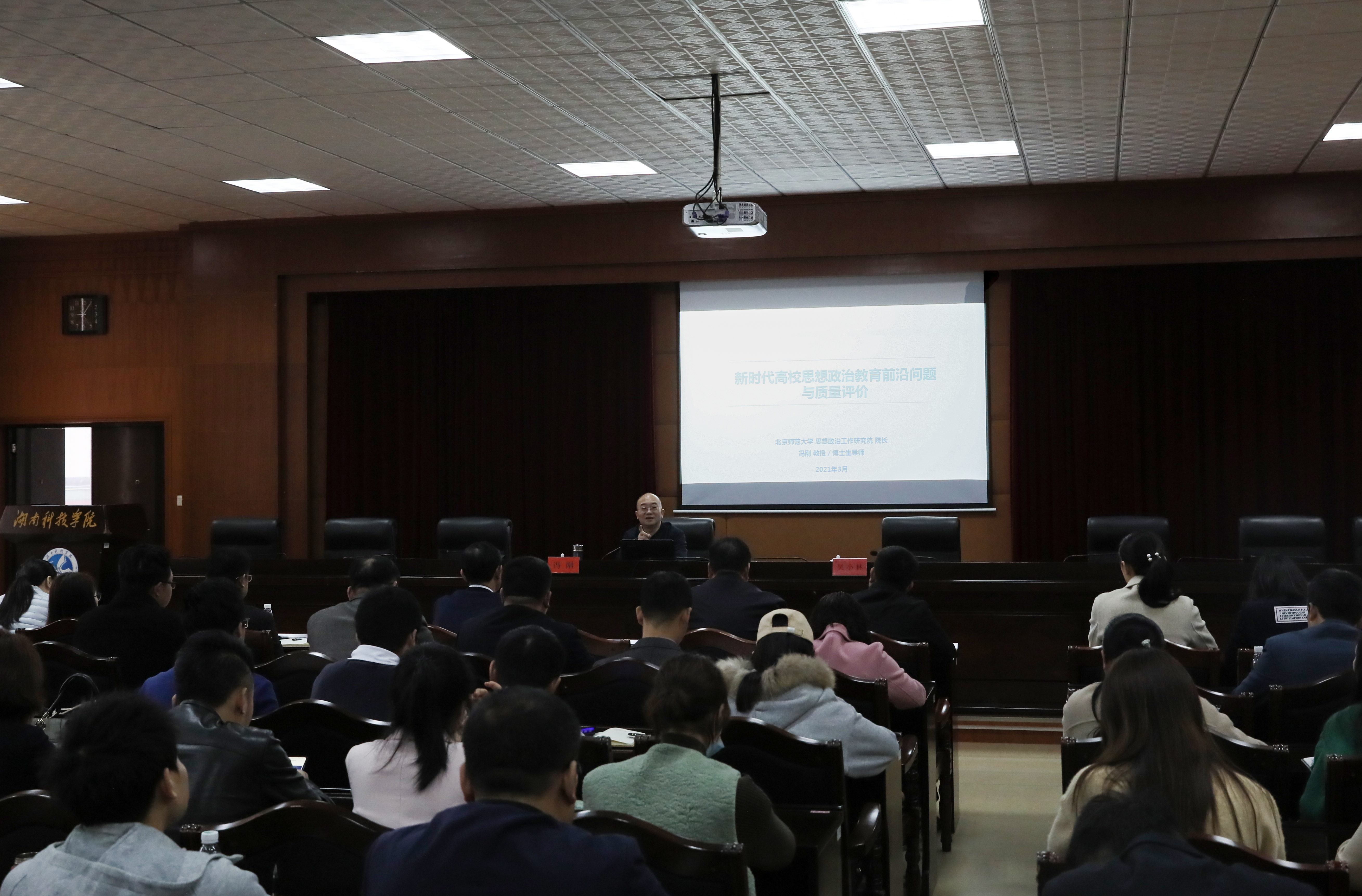 本网讯3月26日上午,教育部思想政治工作司原司长、中国教育发展战略学会思想道德建设专业委员会理事长、北京师范大学思想政治工作研究院院长、博士生导师冯刚应邀来校作专题讲座。讲座由党委委员、副校长吴小林主持。