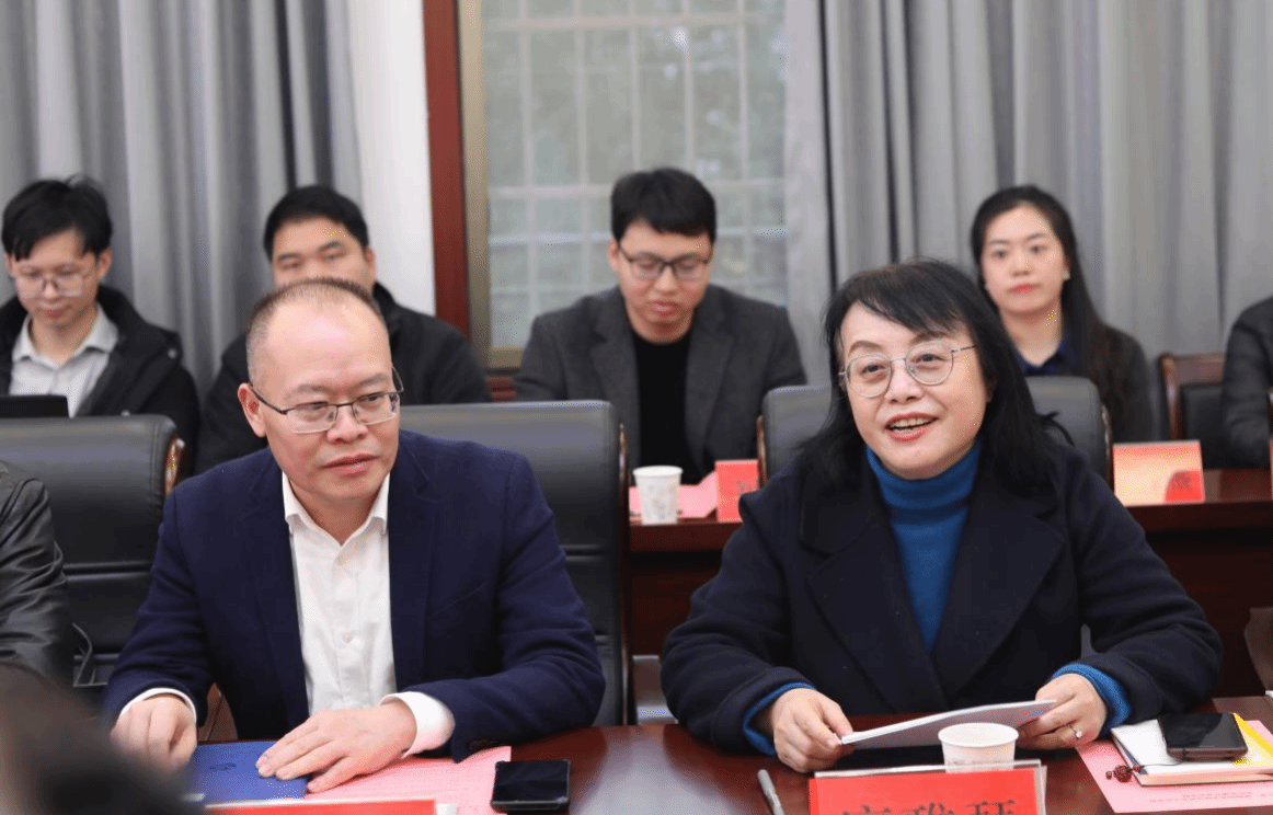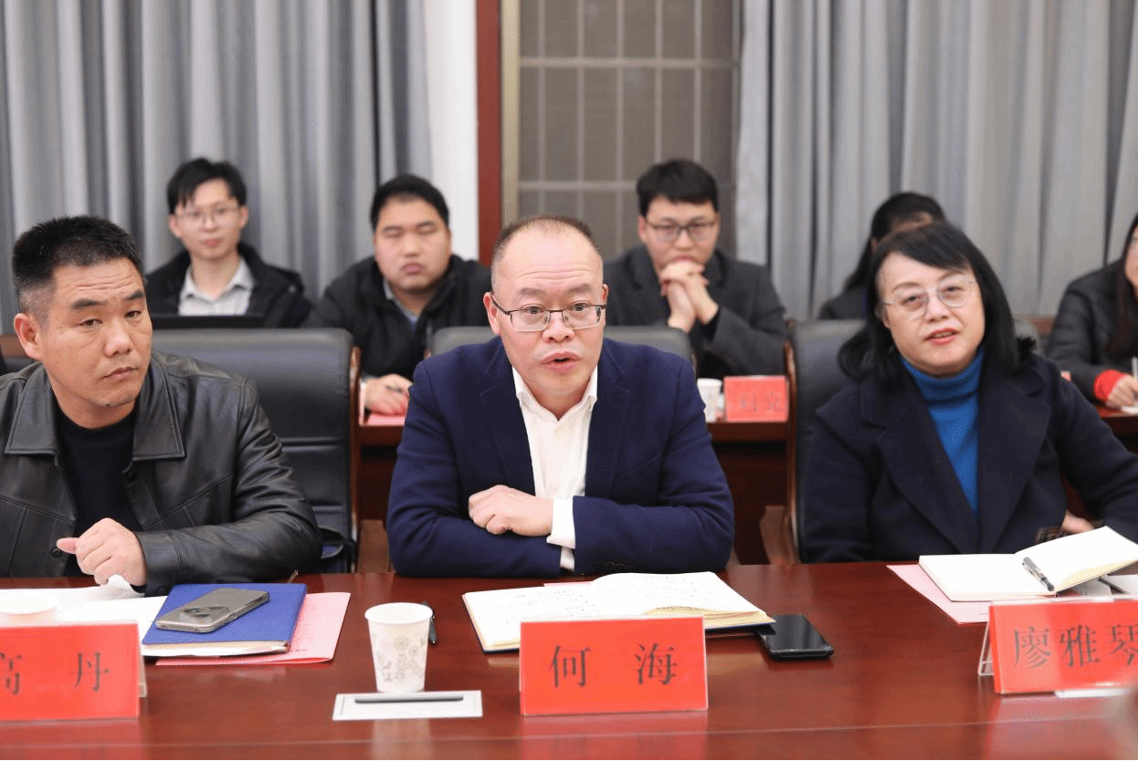 学校党委委员、副校长何海及马克思主义学院领导班子成员、教师代表参加交流。会议由学院党总支书记高丹主持。院长廖雅琴首先致欢迎词,她说我院与湘潭大学马克思主义学院渊源深厚、情谊绵长,在我院在学科专业建设、硕士点申报、重点马院申报与建设方面,湘潭大学马克思主义学院始终给予无私的支持和帮助,毫无保留地分享宝贵经验。此次交流是我院对标先进、补齐短板的难得契机,期盼能借助此次深度研讨,全方位学习湘潭大学马克思主义学院的成熟经验,为我院破解发展瓶颈、提升办学水平注入强劲动能。