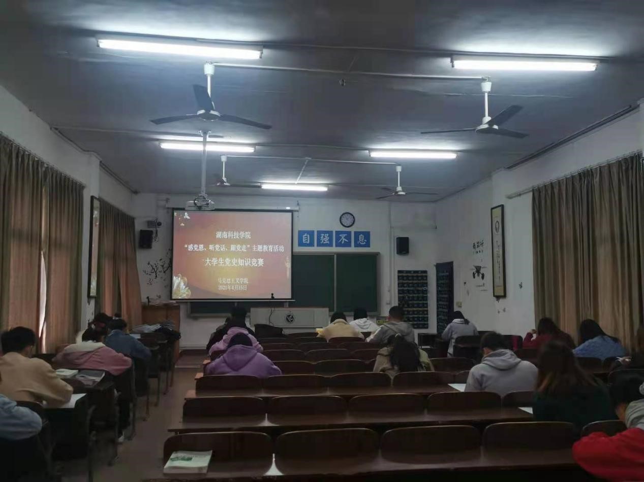 本网讯(通讯员 王华炜)峥嵘百年,共庆华诞。2021年是中国共产党成立100周年,也是“两个一百年”奋斗目标的重要历史交汇点。为进一步加深广大青年学子对党的了解与认识,营造“感党恩,听党话,跟党走”的浓厚氛围。4月15日中午,由校党委宣传部和马克思主义学院共同主办的“感党恩,听党话,跟党走”大学生党史知识竞赛在鹤鸣楼501举行。