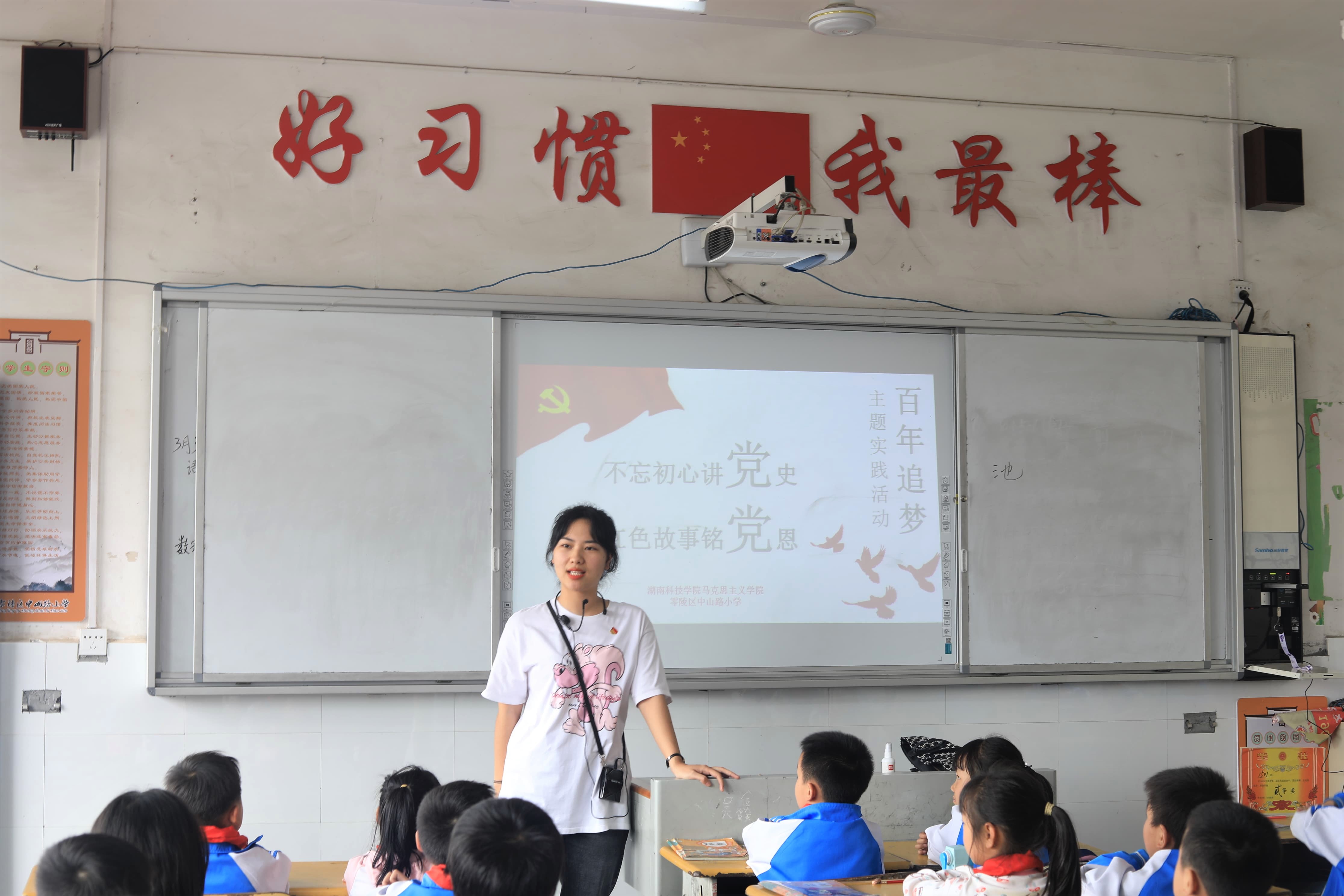 本网讯(通讯员 谢松林)峥嵘百年,共庆华诞。2021年是中国共产党成立100周年,也是“两个一百年”奋斗目标的重要历史交汇点。在中国共产党百年华诞即将来临之际,beat365中文官方网站马克思主义学院思政专业学生发挥专业优势,积极承担党史知识宣讲责任,与永州市零陵区中山路小学建立长期合作关系,组织学生前往学校进行义教活动,将党史教育带入小学课堂,引导学生知党史,感党恩。