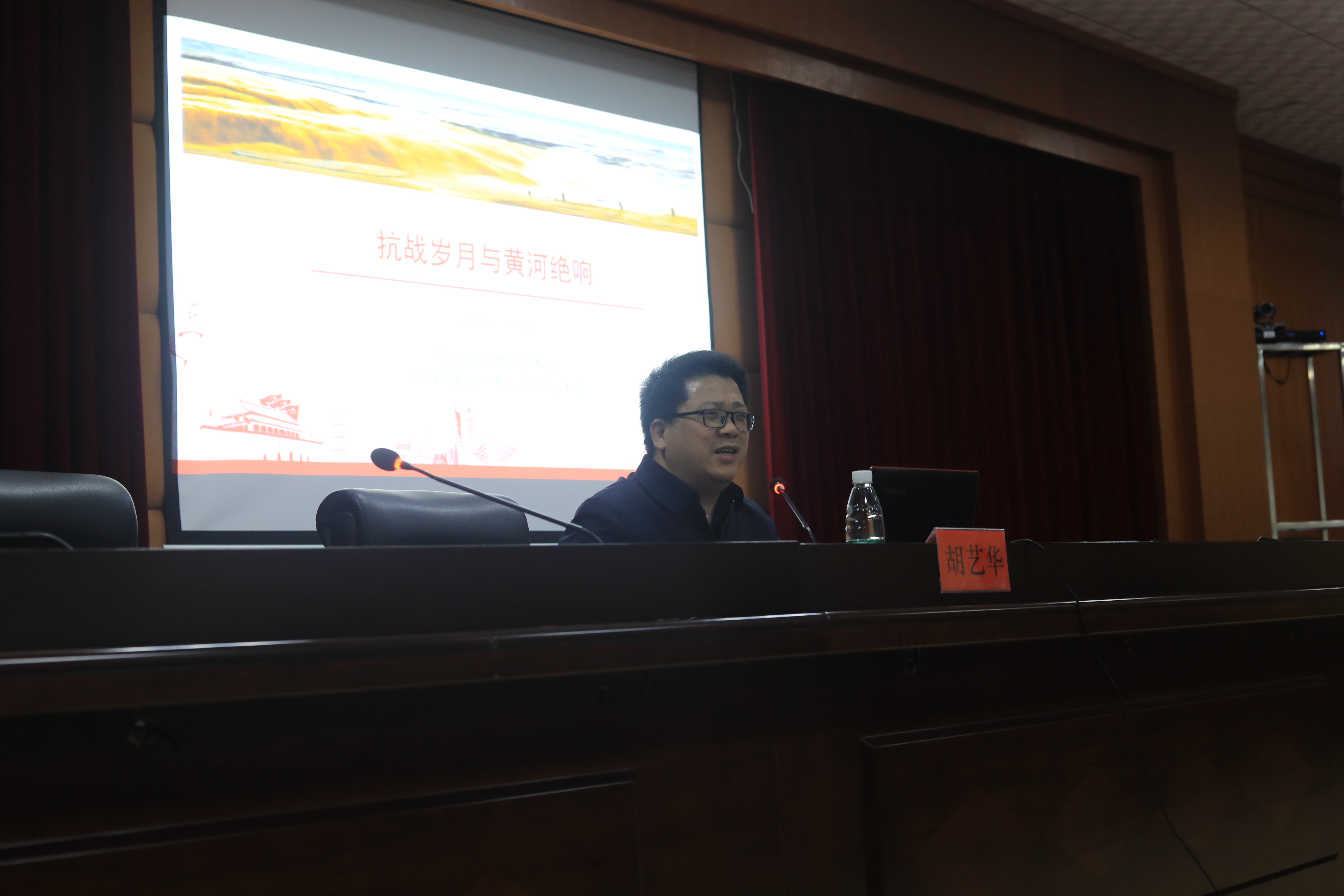 本网讯(通讯员吴祖琳)4月1日晚,武汉音乐学院马克思主义学院院长胡艺华教授,应邀在beat365官网行政楼八楼一会议室作题为《抗战岁月与黄河绝响》的学术讲座,讲座由马克思主义学院院长廖雅琴主持,马克思主义学院及音舞学院共计百余名师生参加。