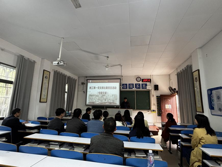 本网讯(通讯员 羊江瑶)为深入贯彻落实学校关于将师德师风建设融入党建工作全过程的要求,推动形成“党建强师、师德铸魂”的育人格局,2025年10月29日,马克思主义学院教工第一党支部书记吴俊平在鹤鸣楼406教室,以《弘扬教育家精神:新时代教师使命》为题,为支部党员教师讲授了专题党课。