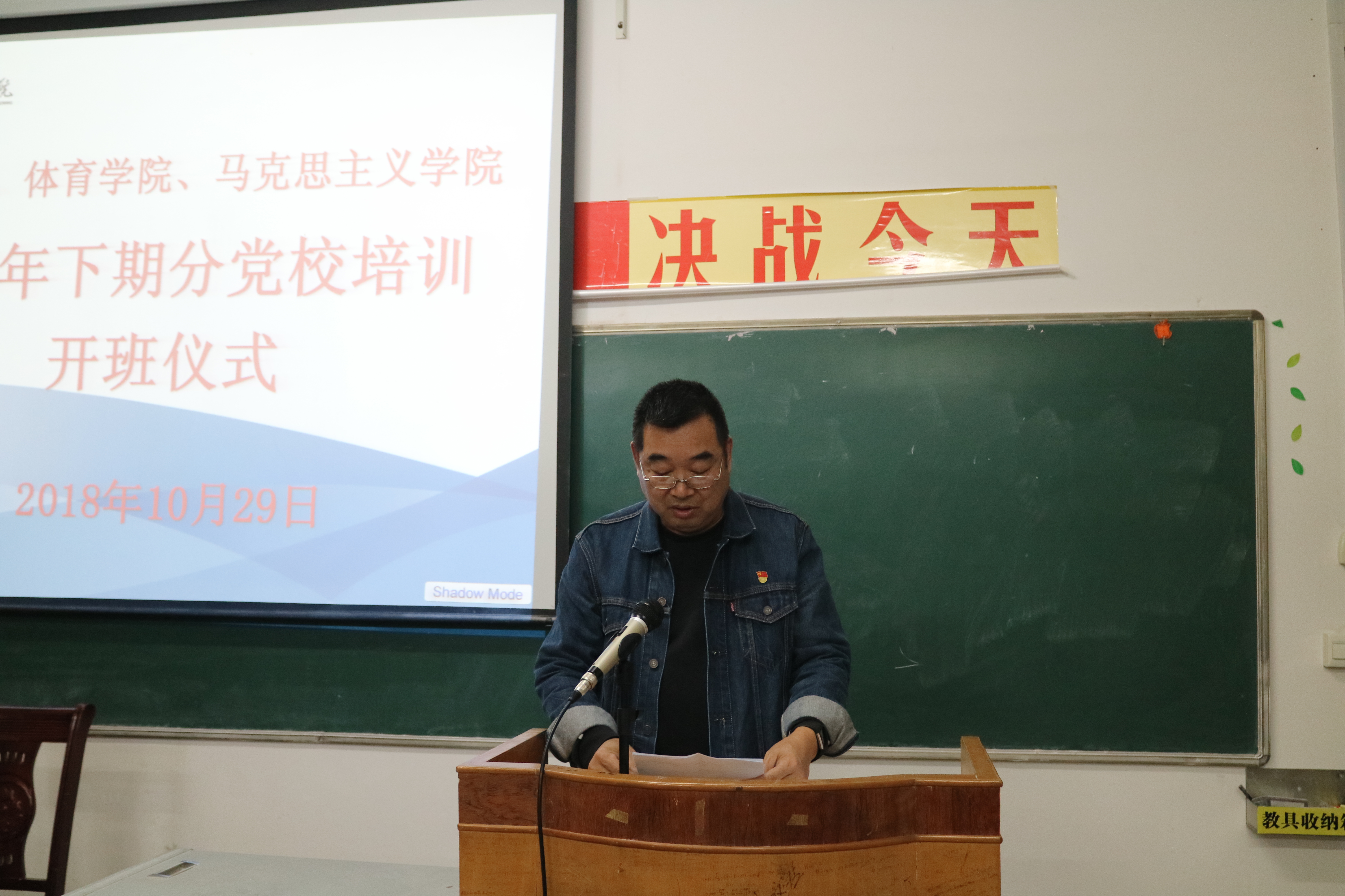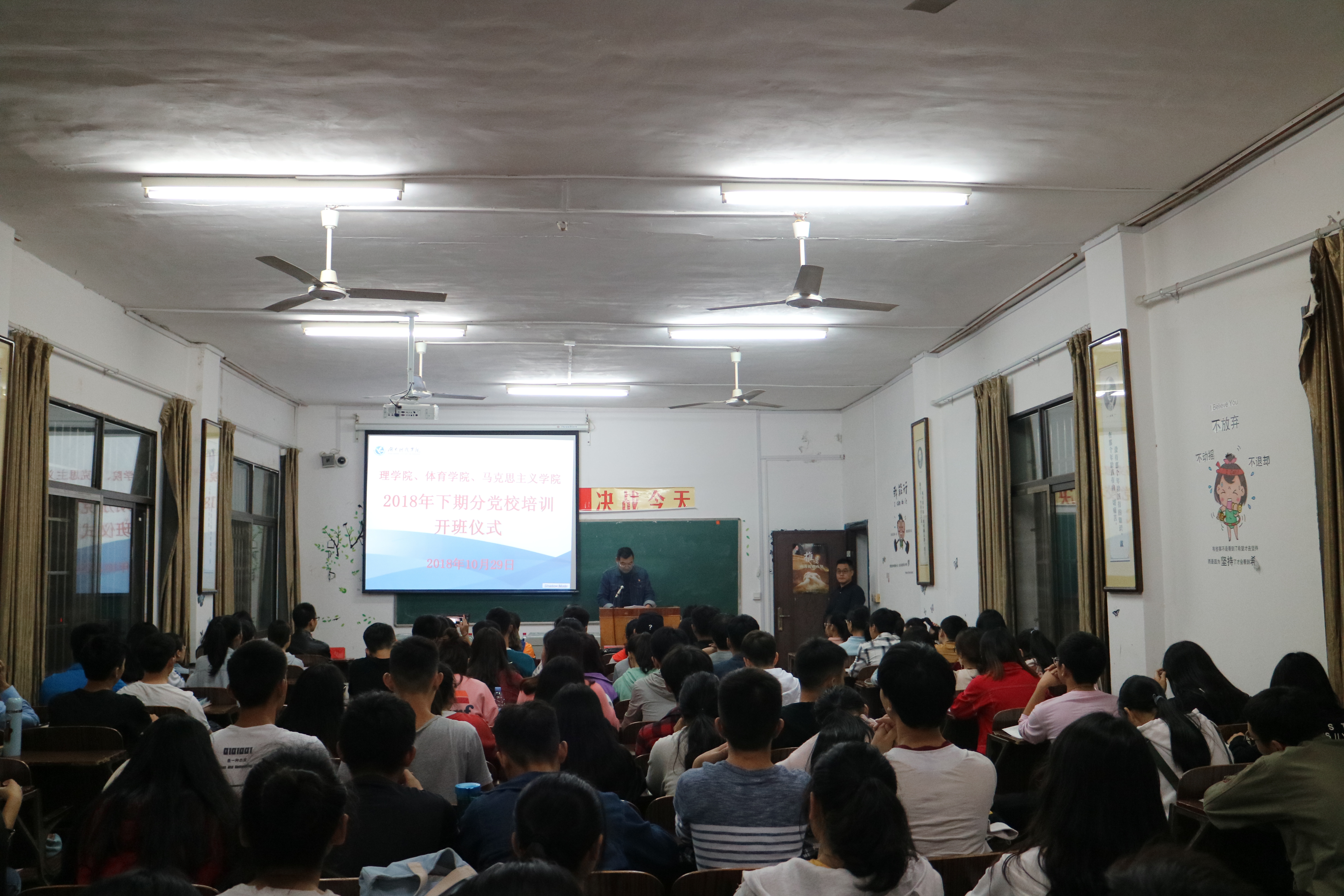 本网讯(通讯员 尹玉婷 黎雪平)10月29日晚,由马克思主义学院、理学院、体育学院联合举办的2018年下期分党校培训班开班典礼在鹤鸣楼501教室举行。三个学院共94名学员参加本次分党校培训。