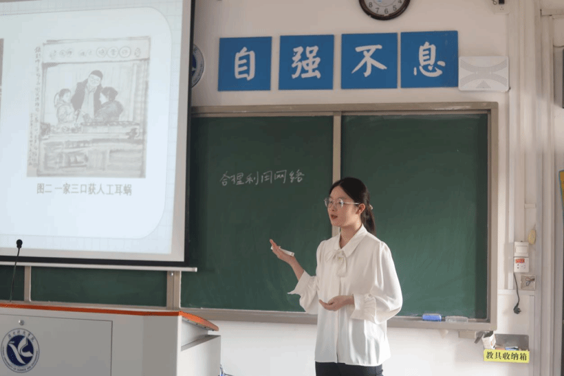 赛场上,选手们尽显卓越风姿。“老师的叮”组匠心独运,以“一家三口重获新声”与“糖水爷爷”正反案例对比,引导学生快速沉浸课堂,领会网络合理利用之关键意义;“树上的鸟儿成双”队另辟蹊径,借解说词与票根等细微元素,徐徐展开湘西十八洞村脱贫致富的宏大叙事,从微观切口挖掘深层内涵,让学生真切体悟脱贫的艰难与伟大,于情感共鸣中强化知识汲取。