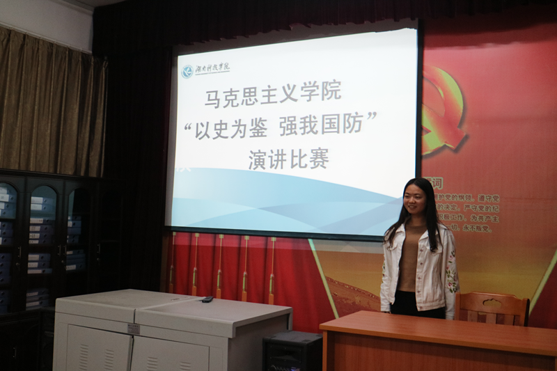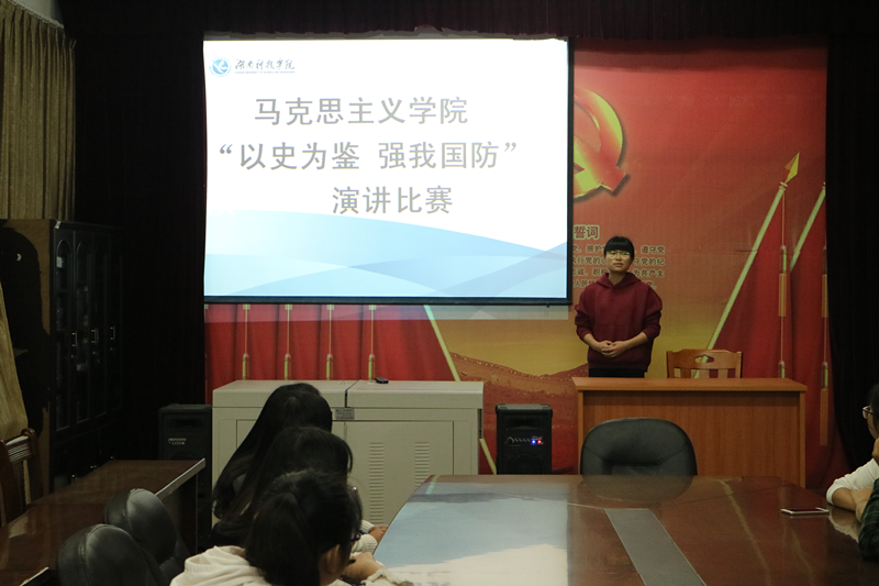 本网讯(通讯员 王婷婷)5月6日晚,马克思主义学院在鹤鸣楼405会议室顺利举办了“以史为鉴,强我国防”主题演讲比赛,思想政治教育1601班郑玲榕赢得此次比赛并将代表本院参加校级比赛。