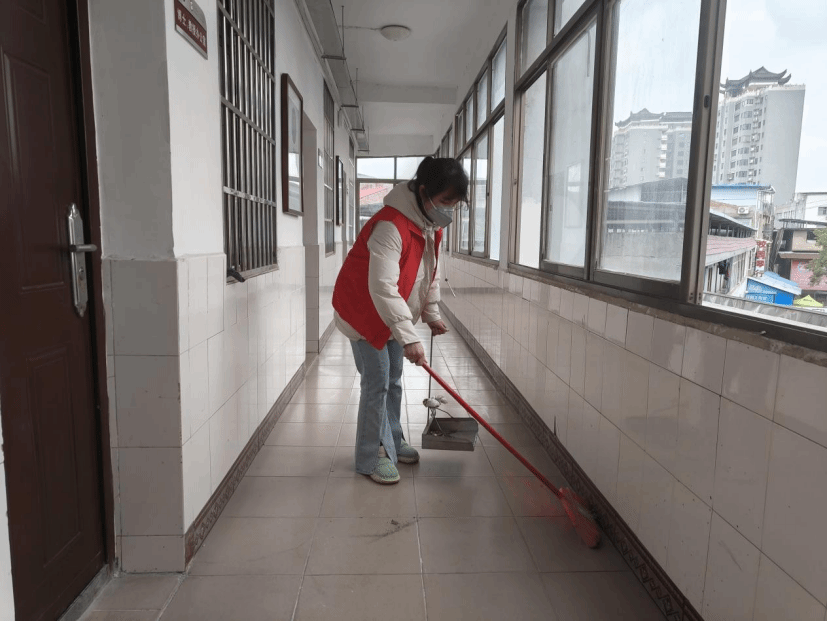 活动中,志愿者们热情高涨,手持扫帚、抹布等清洁工具,认真打扫鹤鸣楼的教室和走廊区域。同时,志愿者还对红色书屋的桌面进行了彻底清洁,确保阅读和学习环境的整洁。在大家的齐心协力之下,公共卫生区域焕然一新。