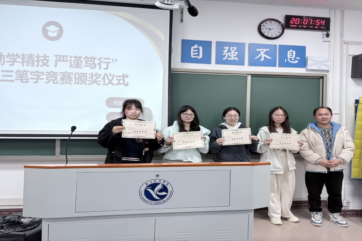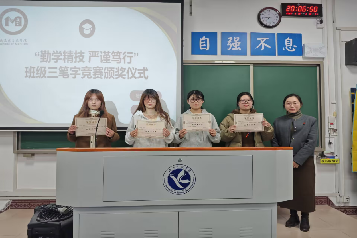 本网讯(记者 田九余)为夯实师范生基本功,强化班级学风建设,马克思主义学院思政2301班于3月17日在鹤鸣楼113书法室和501教室举办了以“勤学精技、严谨笃行”为主题的班级三笔字比赛。全班同学积极参与,班主任陈薇薇老师与辅导员吴志伟老师全程指导并颁奖,现场气氛热烈。