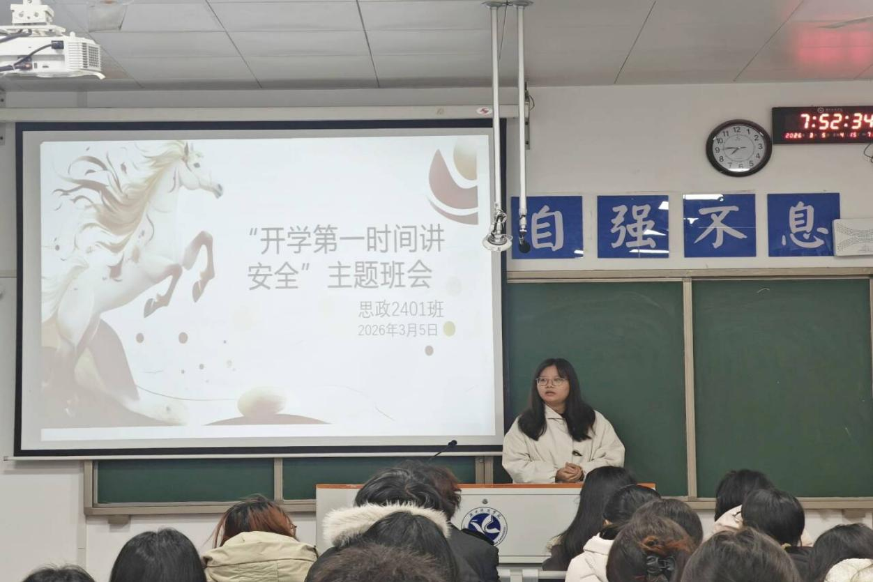 本网讯(记者 段丽莎 吴美林)为进一步提升学生安全防范意识,筑牢校园安全防线,营造和谐、稳定的校园环境。3月4-6日,马克思主义学院组织各班在鹤鸣楼围绕交通安全、食品安全、消防安全、网络安全、防电信诈骗等召开了安全主题教育班会。