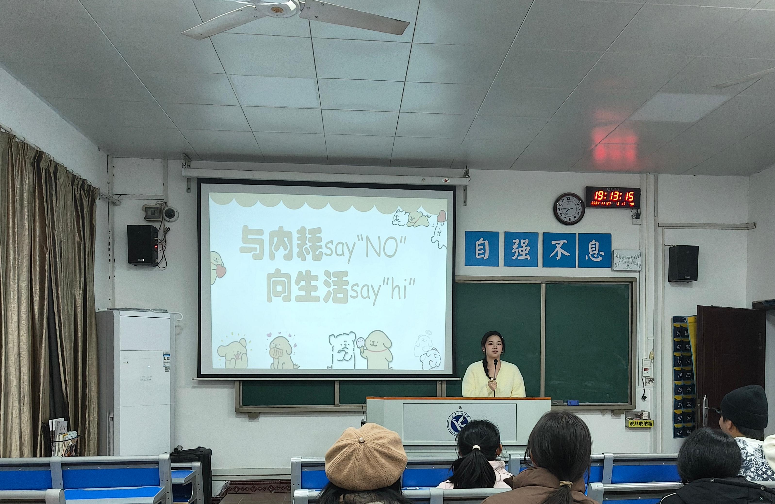本网讯(记者 李嘉瑶)为了能让同学们正确对待焦虑和“内耗”,更好的融入校园生活,11月27日,我院于鹤鸣楼501开展“与内耗say‘no’,向生活say‘hi’”主题心理健康微课。本次微课由思政2201班潘媛担任主讲人,24级全体学生参加。