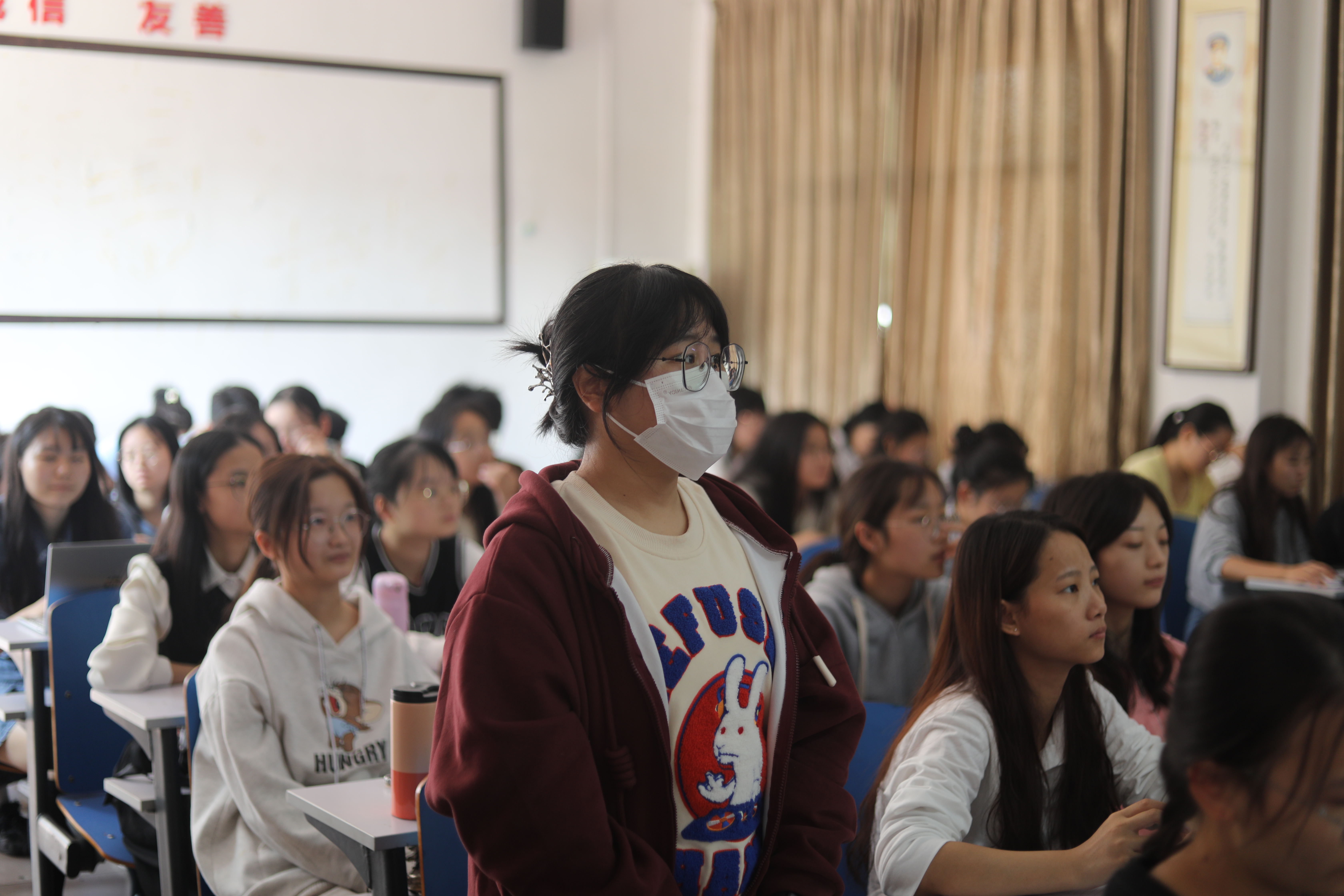 观看结束后,思政2101班杨露发表感悟:“听完习近平总书记在党的二十大会议上的报告,我深有感触,满腔热枕。如今,我们踏上了实现第二个百年奋斗目标的赶考路。正如习近平总书记所说‘青年强则国家强’,我们青年人生逢其时,如何做好新时代的答卷人,接好中华复兴的接力棒,这需要每一位青年都不懈奋斗与努力,坚定不移听党话、跟党走,立志做有理想、敢担当、能吃苦、肯奋斗的新时代好青年。何其有幸,生于华夏,吾辈当自强!”