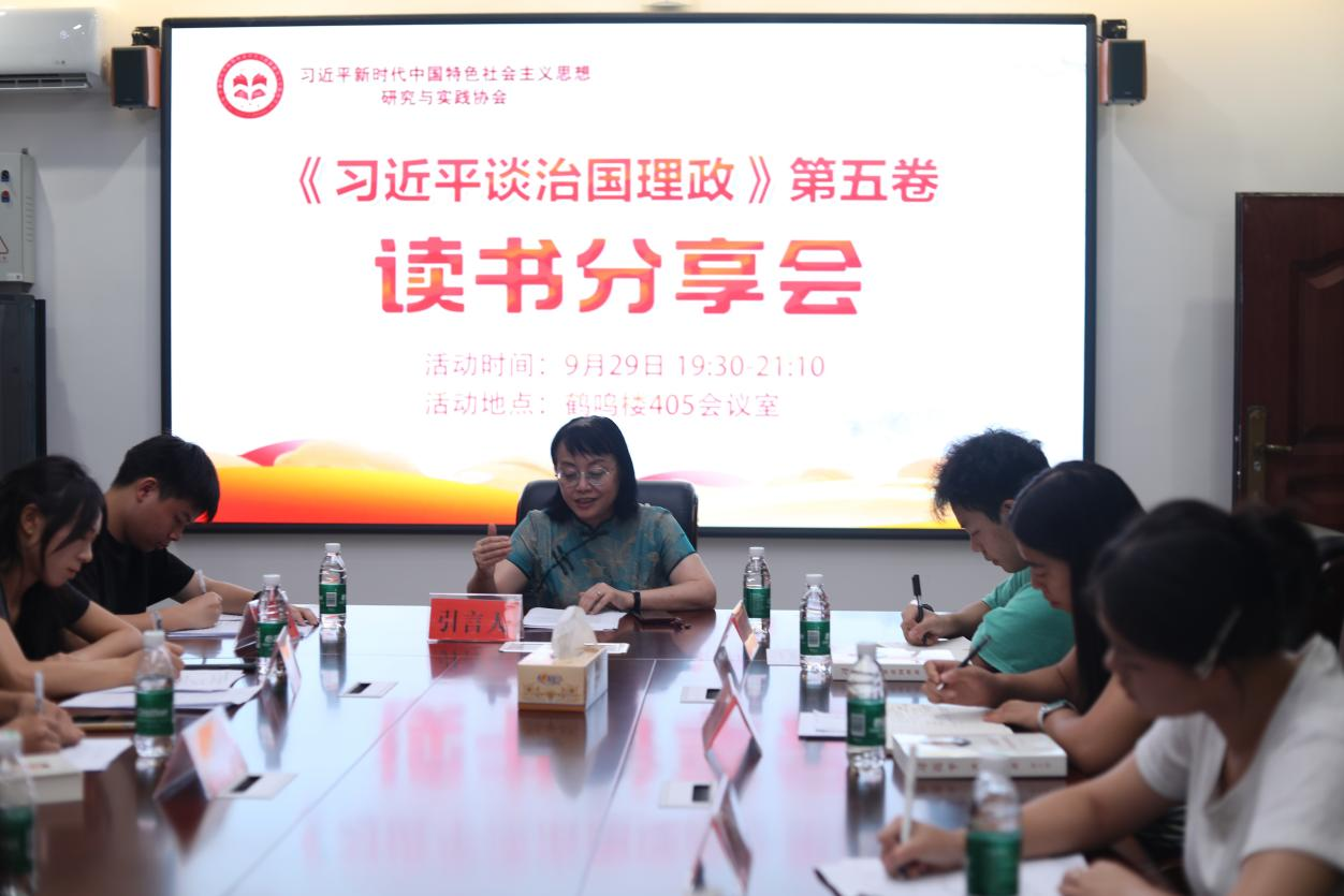本网讯(记者 刘获逞 李嘉瑶 周聪)9月29日晚,beat365中文官方网站习近平新时代中国特色社会主义思想研究与实践协会在鹤鸣楼405会议室举办“《习近平谈治国理政》第五卷读书分享会”活动。