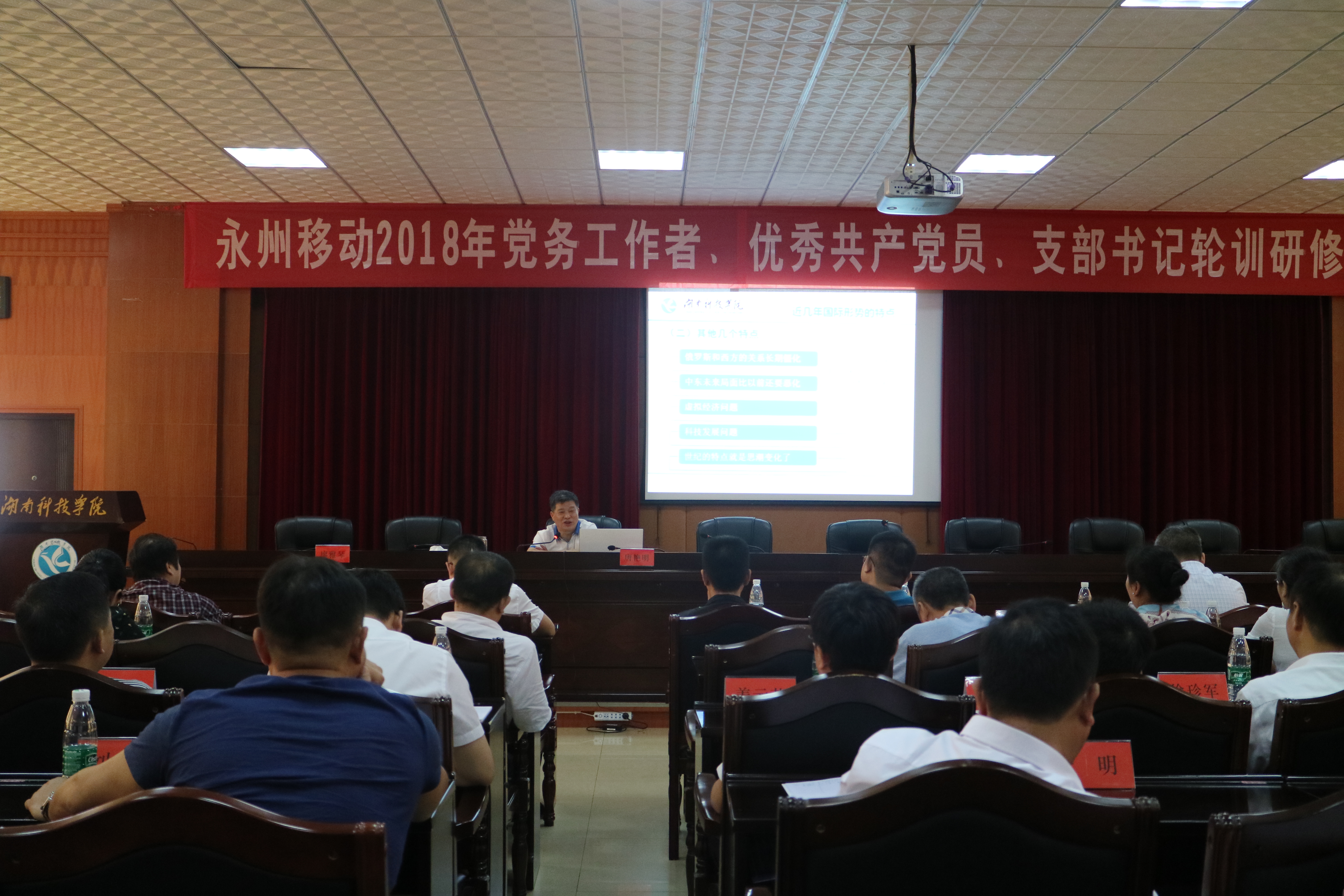 此次党建轮训研修班以课堂讲授为主,培训对象为永州移动公司各基层党组织党务工作者、优秀共产党员、支部书记。培训期间,马克思主义学院邀请了江西师范大学马克思主义学院院长、博士生导师周利生,湖南省高校干部培训中心主任、书记,省委教育工委党校常务副校长刘国华,校党委副书记唐艳明,组织部部长卢桂珍,马克思主义学院党总支书记唐森树等专家学者为永州移动公司参训学员作专题讲座,深入解读了十九大会议精神、新形势下全面从严治党、加强基层党组织建设等重要内容。课程主题鲜明、内容丰富、阐述精辟,具有很强的思想性、指导性、针对性,为参训学员学深悟透十九大精神,提高基层党组织战斗力起到了很好的作用。